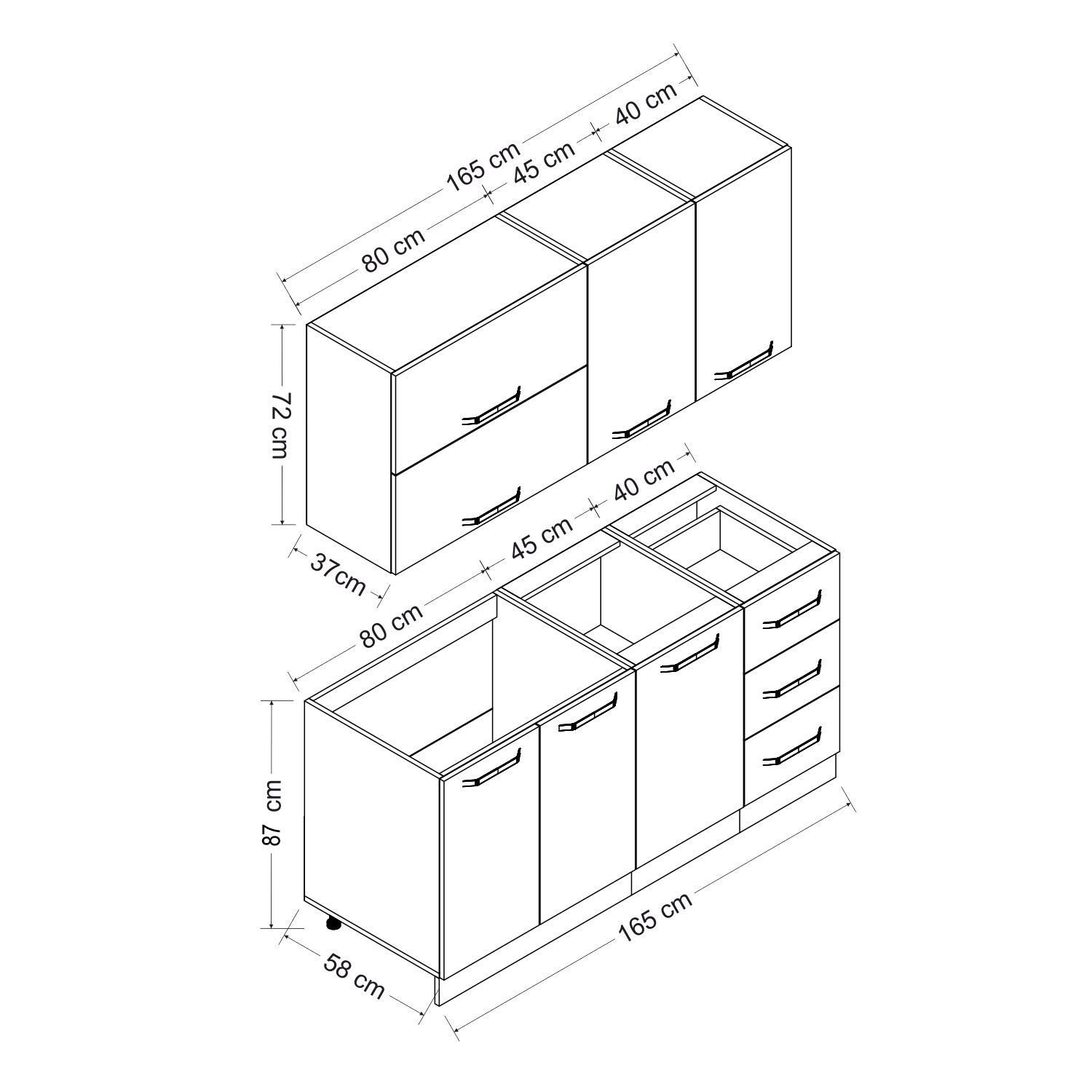 | Hazır Dolap Alt Modül Genişlik | : | 165 cm |