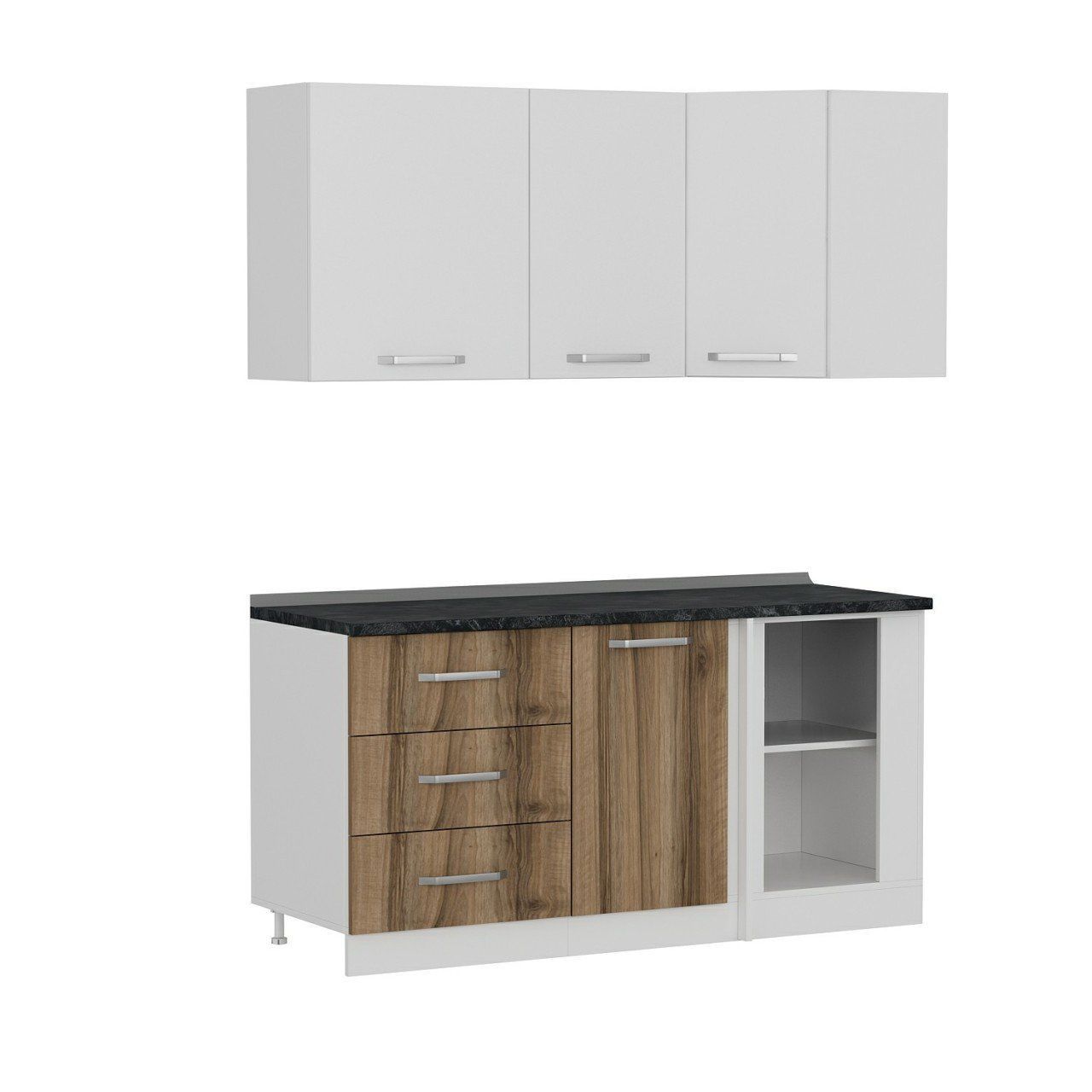 Minar 165Cm Köşe Mutfak Dolabı - Beyaz/Dore K165-D2
