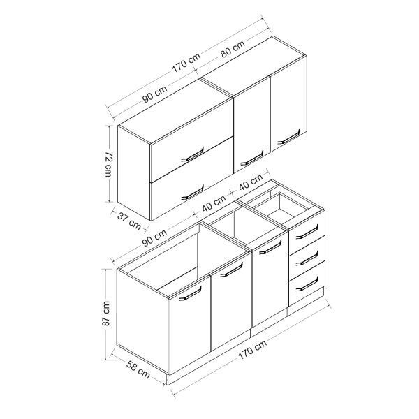 | Hazır Dolap Alt Modül Genişlik | : | 170 cm |
