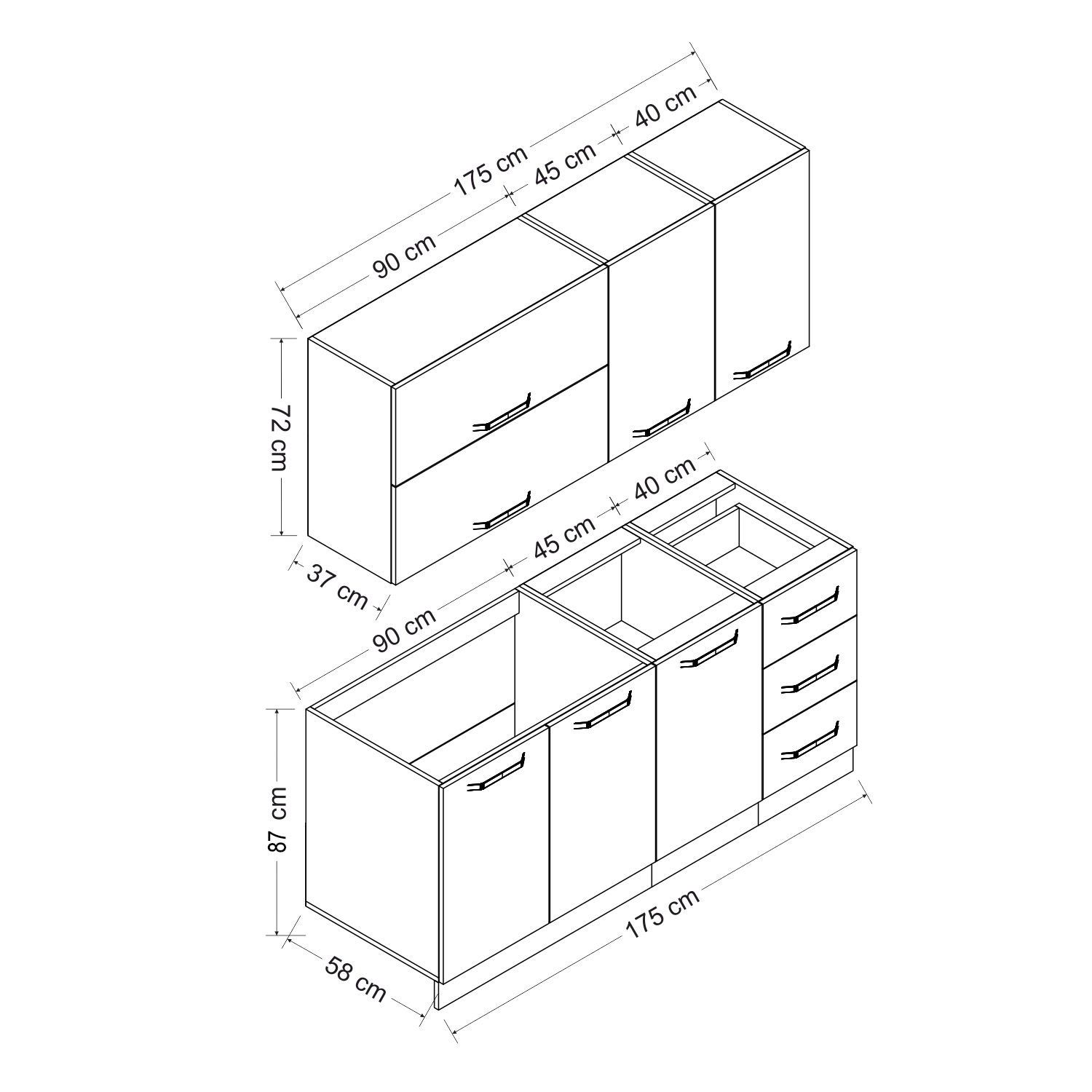 | Hazır Dolap Üst Modül Genişlik | : | 175 cm |
