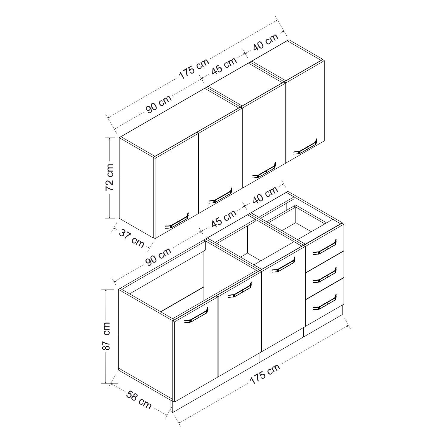 | Hazır Dolap Üst Modül Genişlik | : | 175 cm |