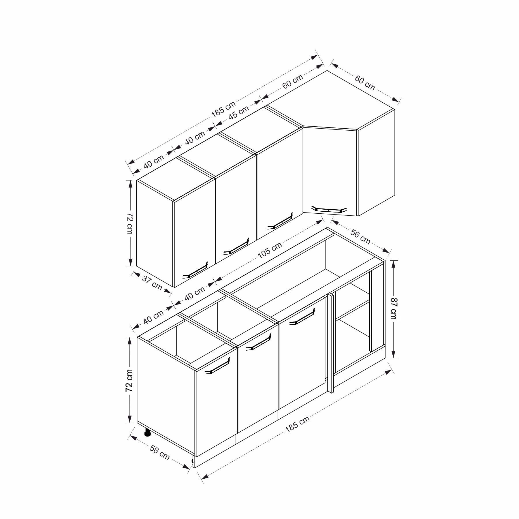 Minar 185Cm Köşe Mutfak Dolabı - Beyaz K185-B1