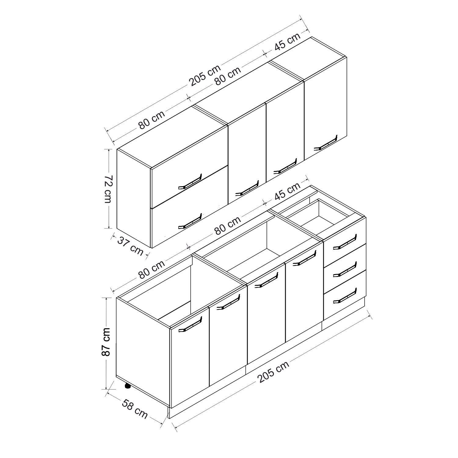 | Hazır Dolap Alt Modül Genişlik | : | 205 cm |