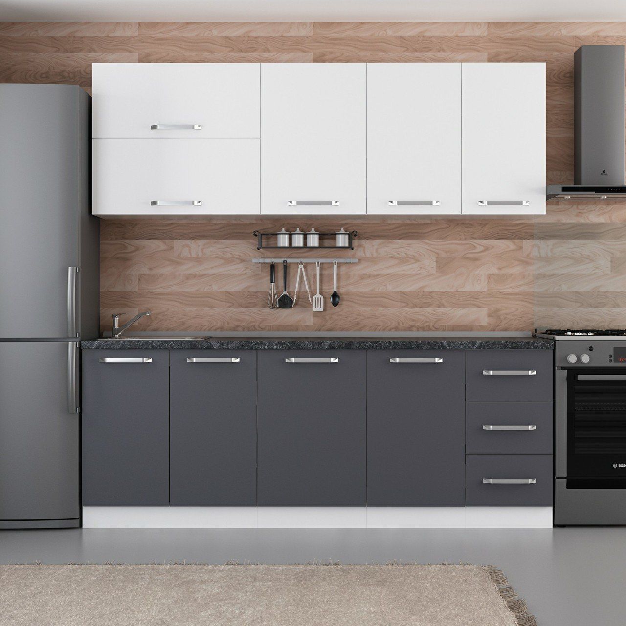 Minar 215 Cm Mutfak Dolabı Beyaz Antrasit 215-A1