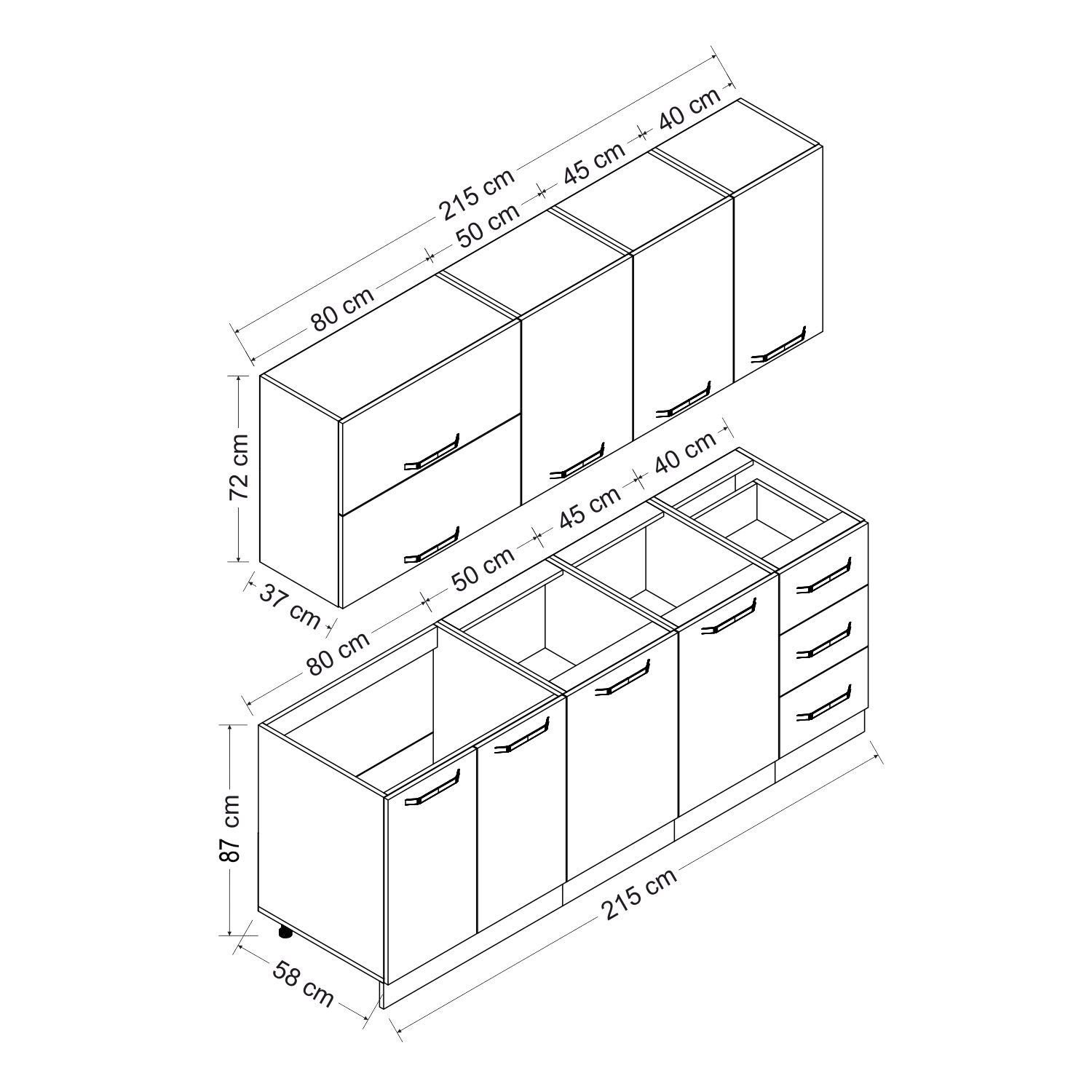 | Hazır Dolap Alt Modül Genişlik | : | 215 cm |