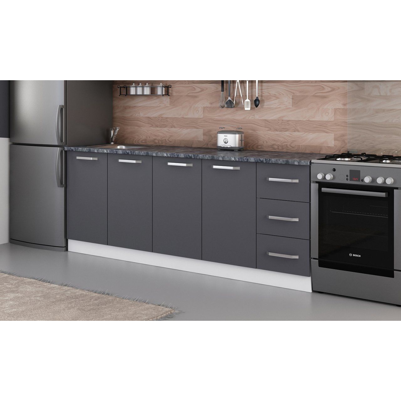 Minar 220 Cm Mutfak Dolabı Beyaz Antrasit 220-A3-Alt Modül