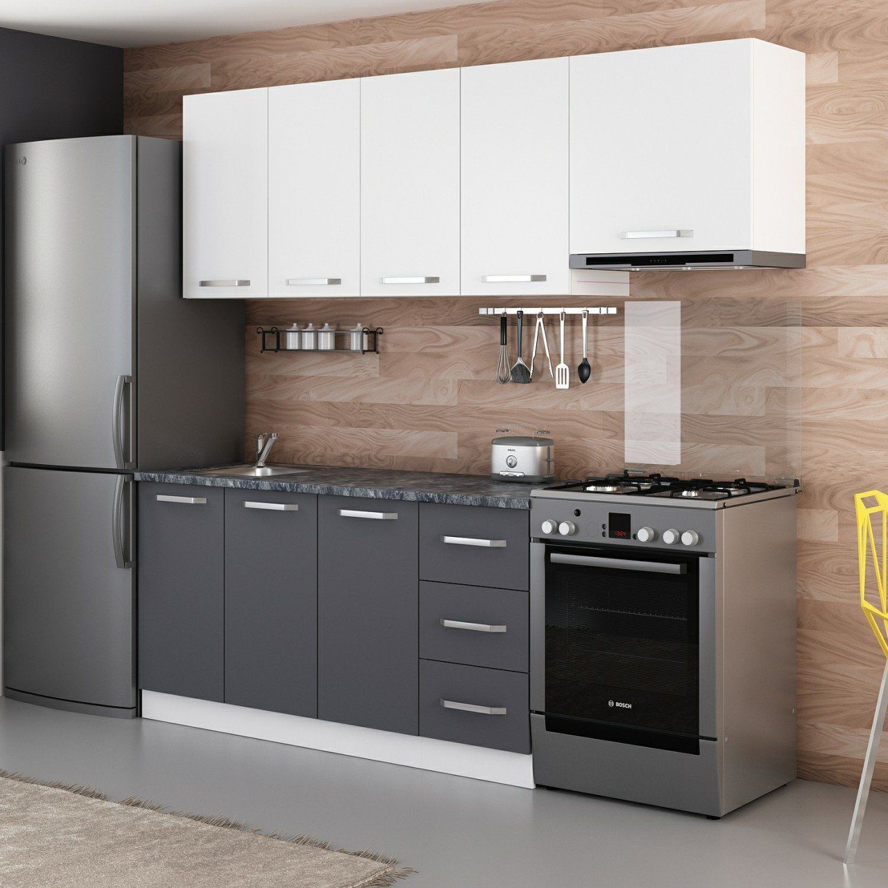 Minar 220 Cm Mutfak Dolabı Beyaz Antrasit 220-A5
