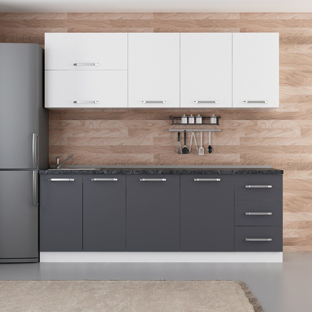 Minar 225 Cm Mutfak Dolabı Beyaz Antrasit 225-A1