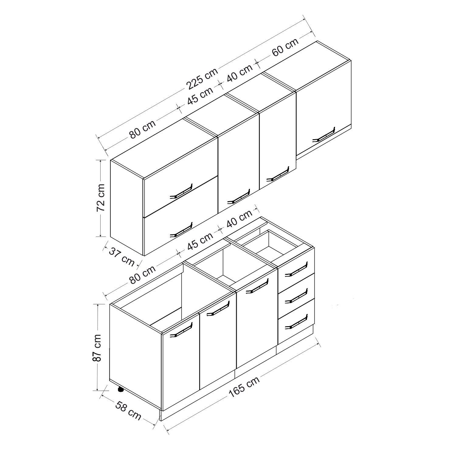 | Hazır Dolap Üst Modül Genişlik | : | 225 cm |