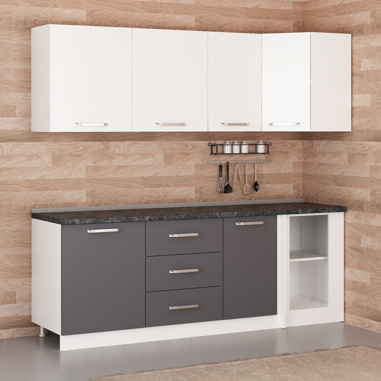 Minar 225Cm Köşe Mutfak Dolabı - Beyaz/Antrasit K225-A3