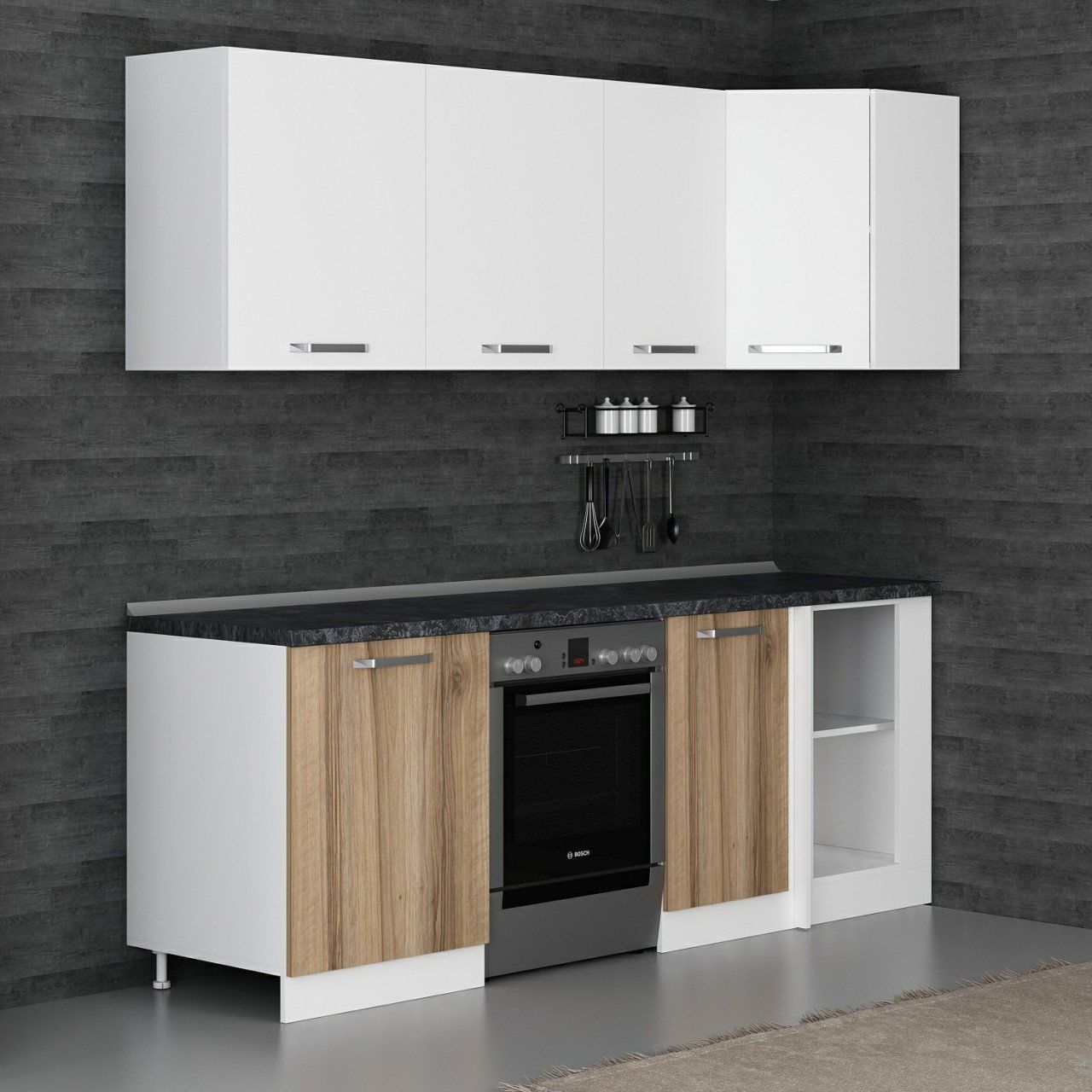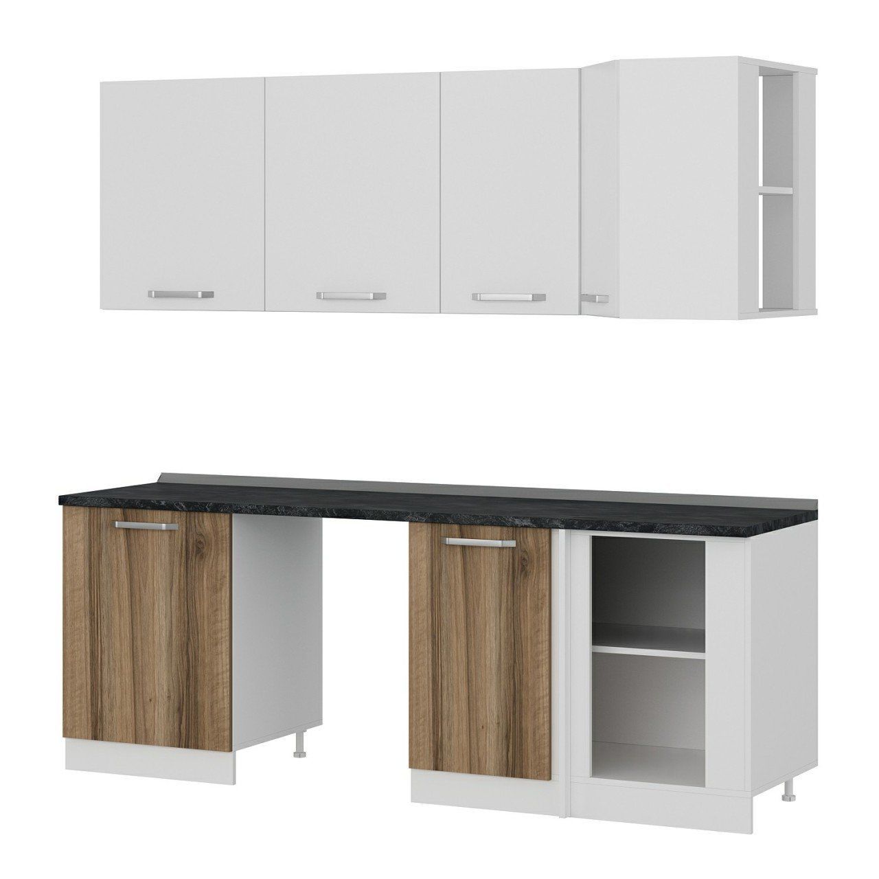 Minar 225Cm Köşe Mutfak Dolabı - Beyaz/Dore K225-D2