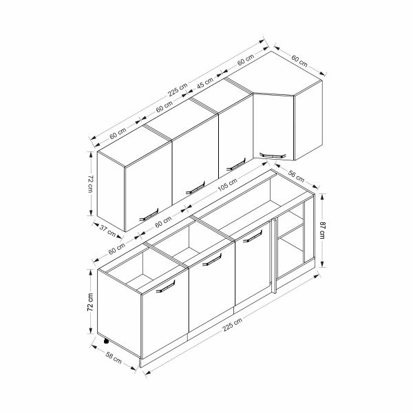 | Hazır Dolap Alt Modül Genişlik | : | 225 cm |