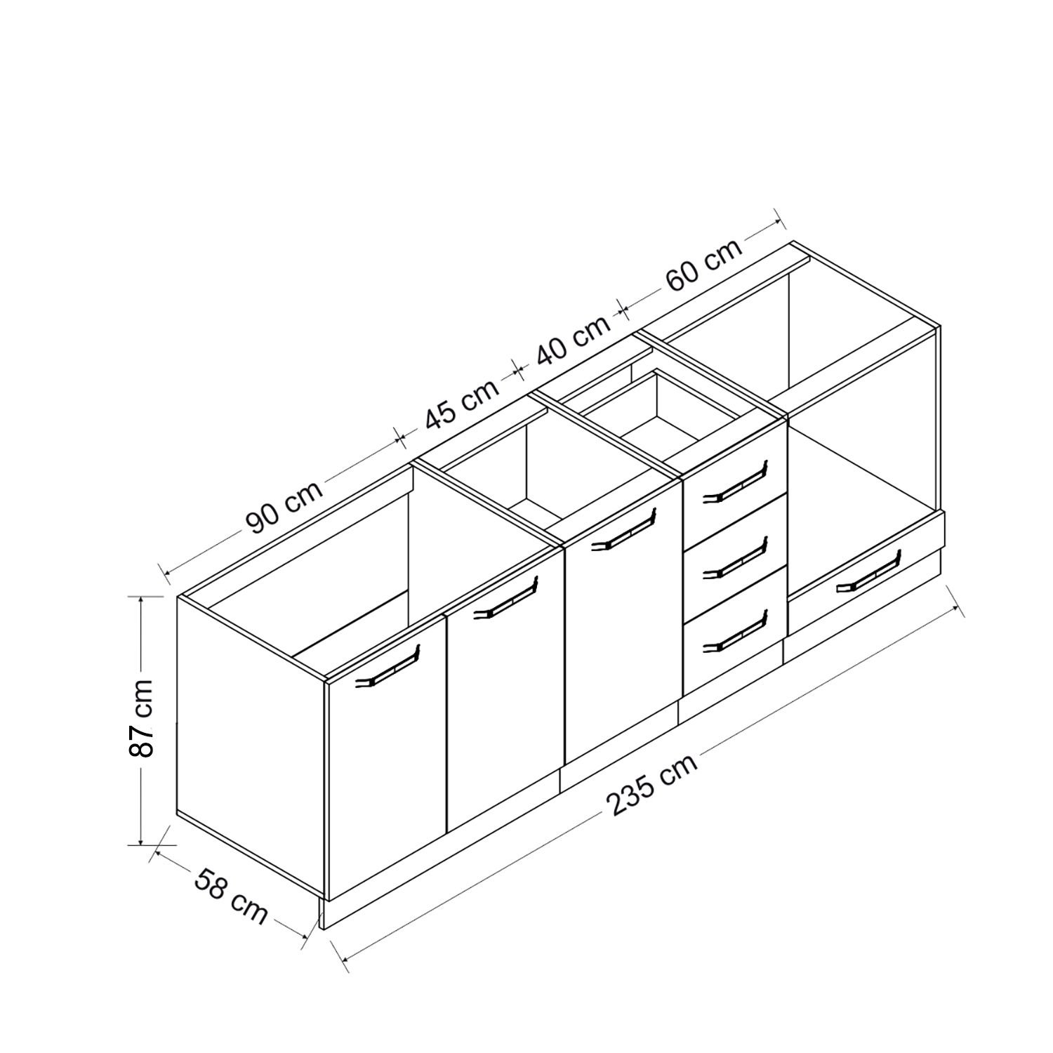 Minar 235 Cm Mutfak Dolabı Beyaz Antrasit 235-A3-Alt Modül