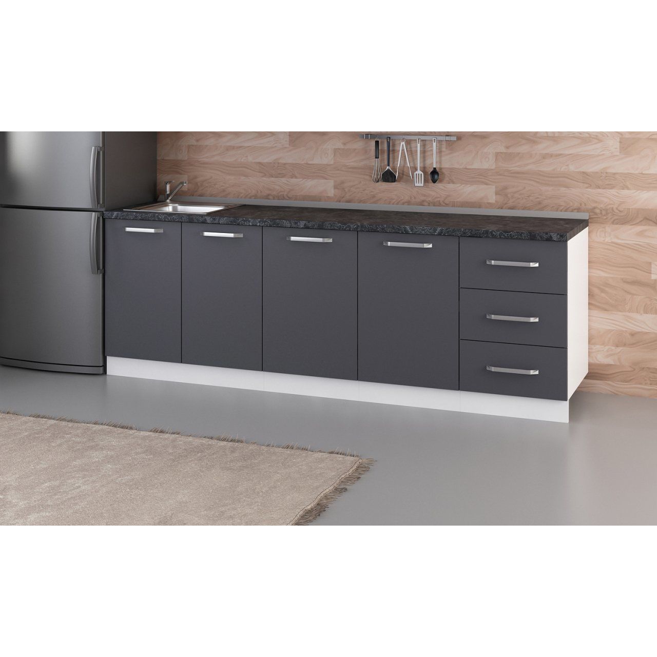 Alt modüllerin yüksekliğine 3 cm tezgah kalınlığı eklenmelidir!