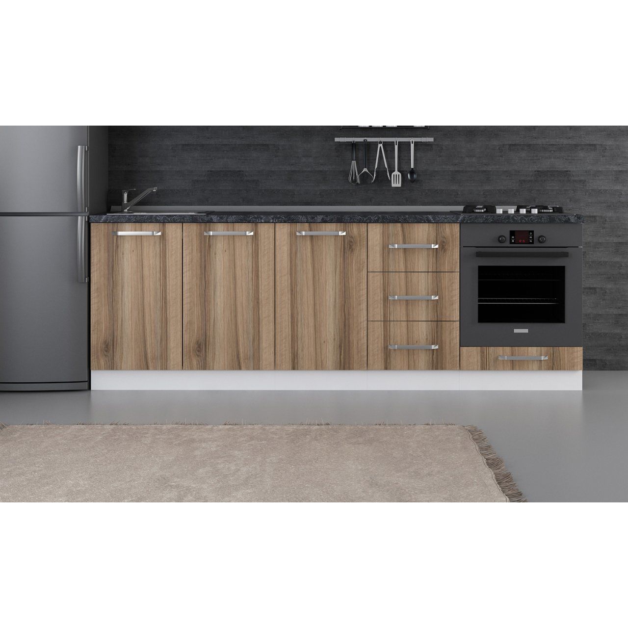 Alt modüllerin yüksekliğine 3 cm tezgah kalınlığı eklenmelidir!