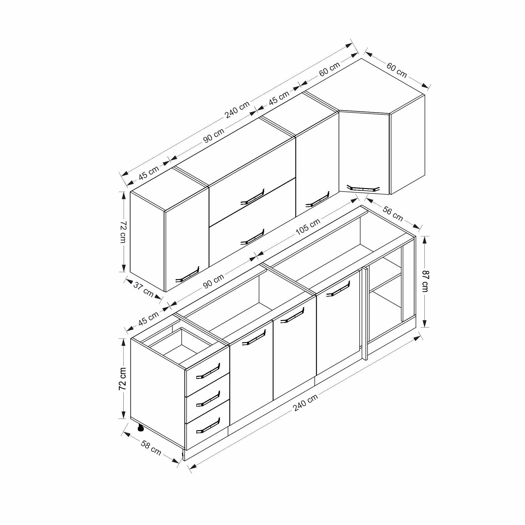 Minar 240Cm Köşe Mutfak Dolabı - Beyaz K240-B3