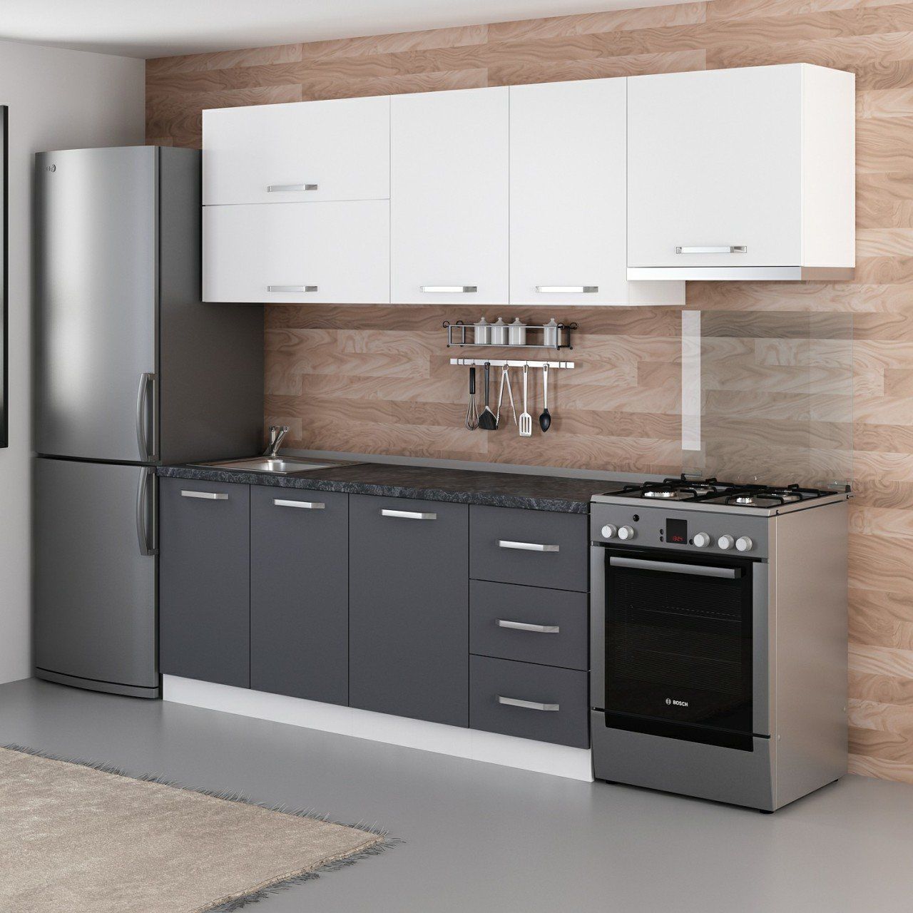 Minar 245 Cm Mutfak Dolabı Beyaz Antrasit 245-A5