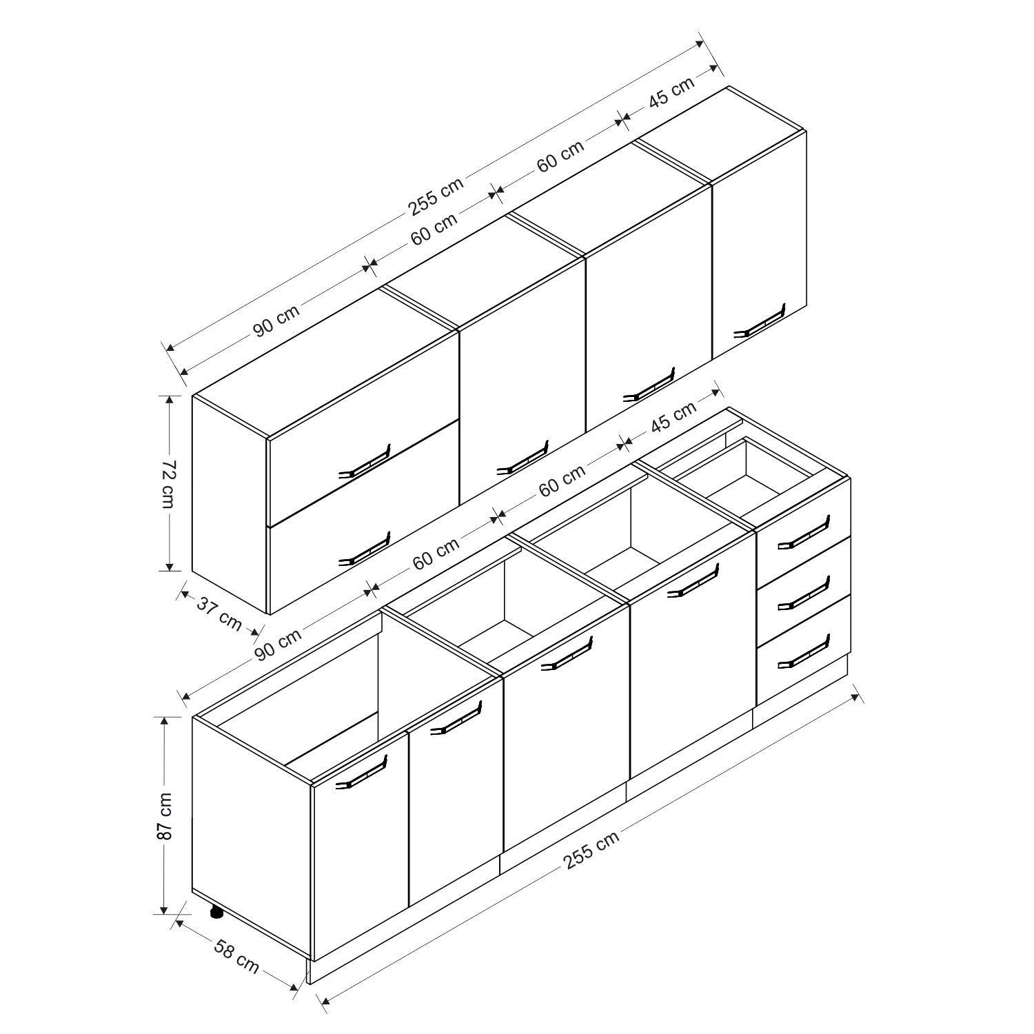| Hazır Dolap Alt Modül Genişlik | : | 255 cm |