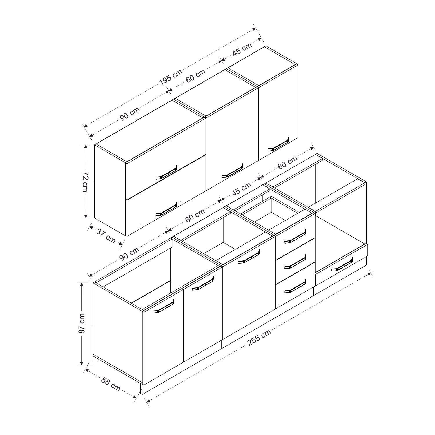 | Hazır Dolap Alt Modül Genişlik | : | 255 cm |