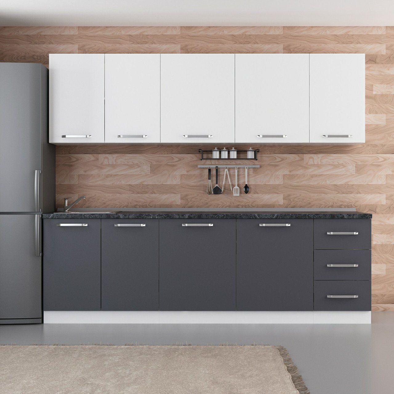 Minar 255 Cm Mutfak Dolabı Beyaz Antrasit 255-A1
