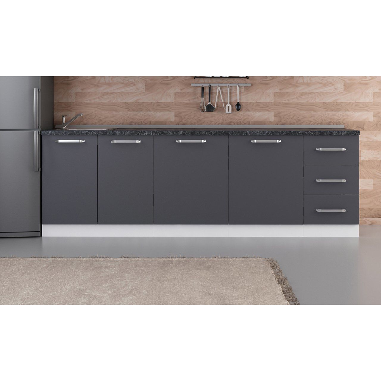 Minar 255 Cm Mutfak Dolabı Beyaz Antrasit 255-A1-Alt Modül