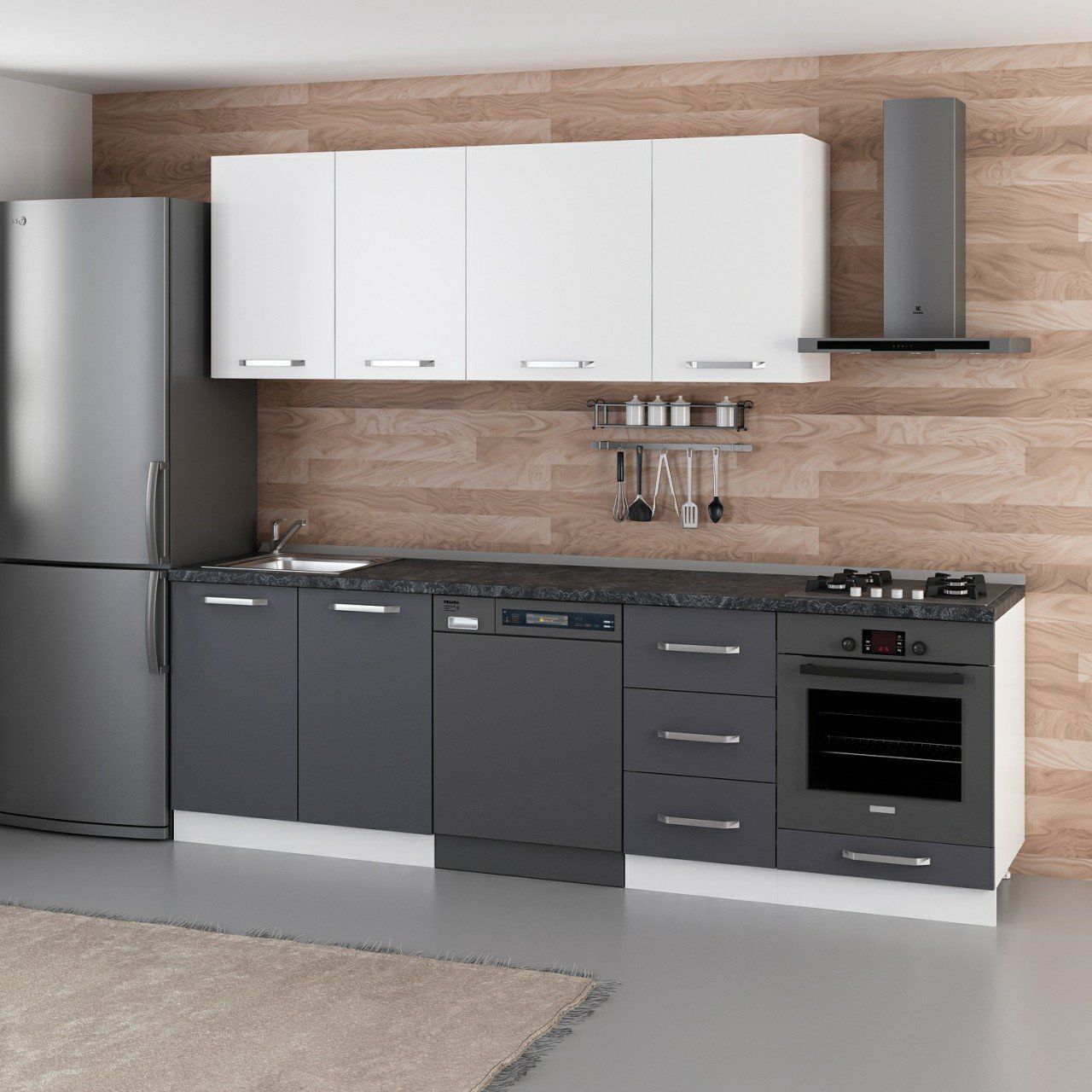 Minar 255 Cm Mutfak Dolabı Beyaz Antrasit 255-A11