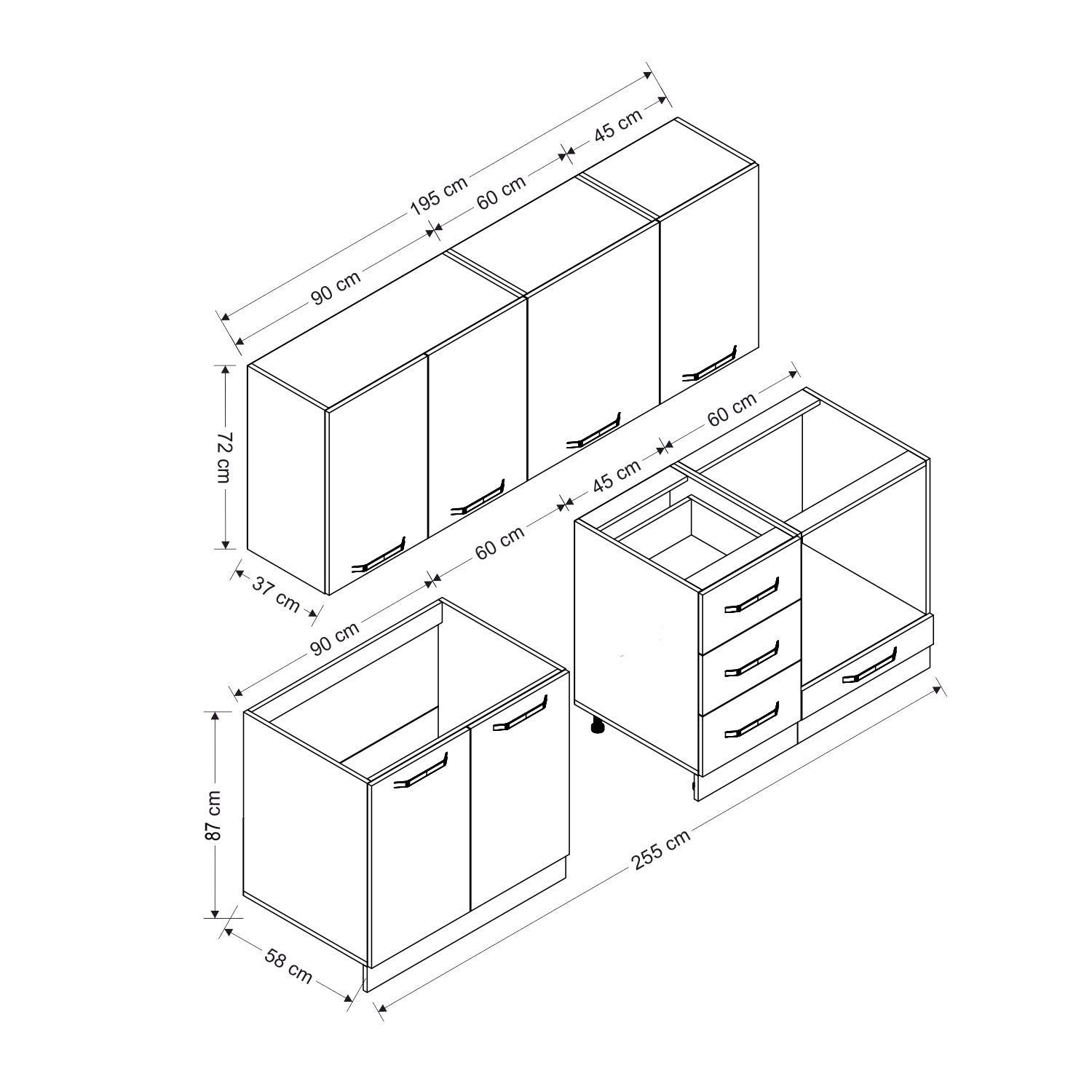 | Hazır Dolap Alt Modül Genişlik | : | 255 cm |