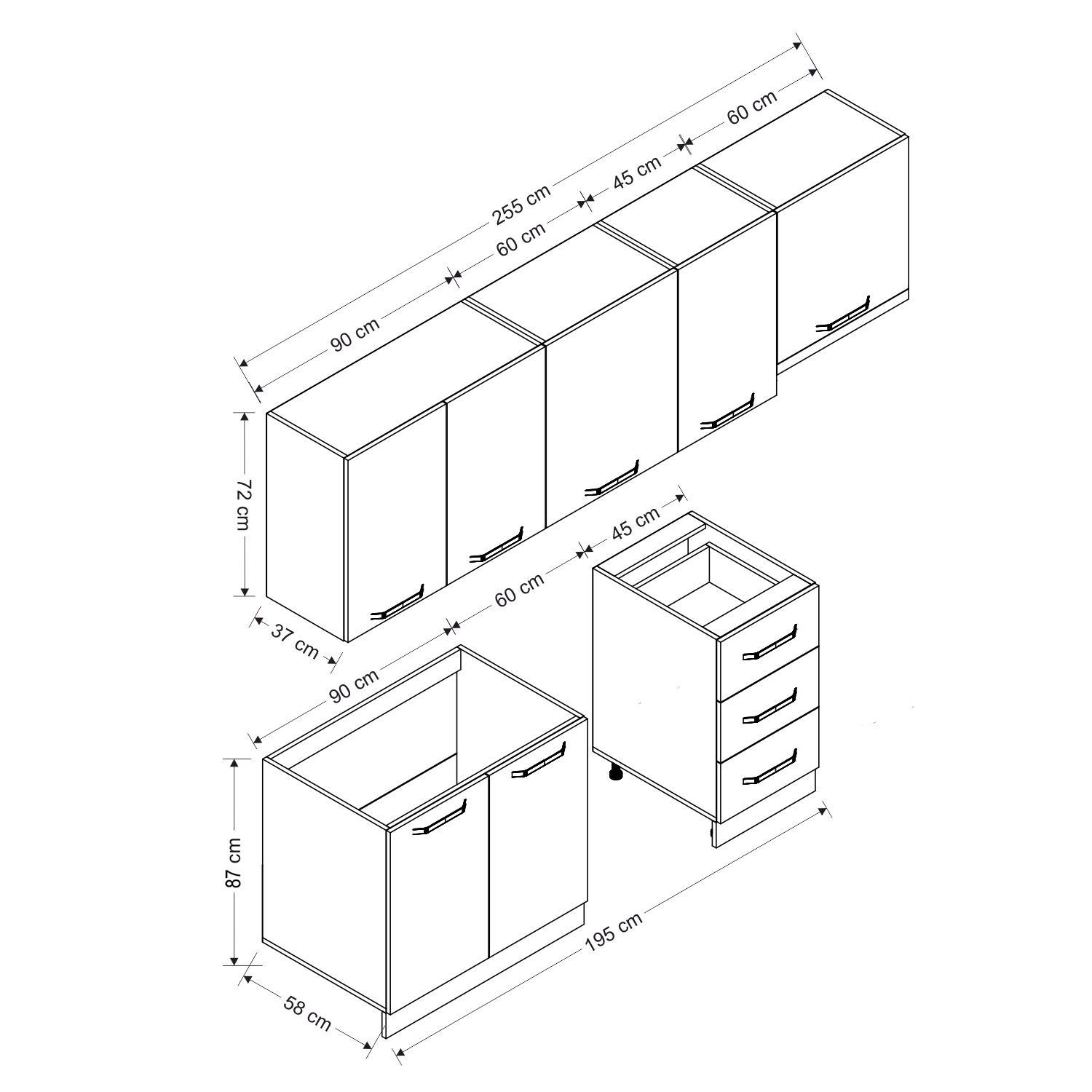 Minar 255 Cm Mutfak Dolabı Beyaz Antrasit 255-A12