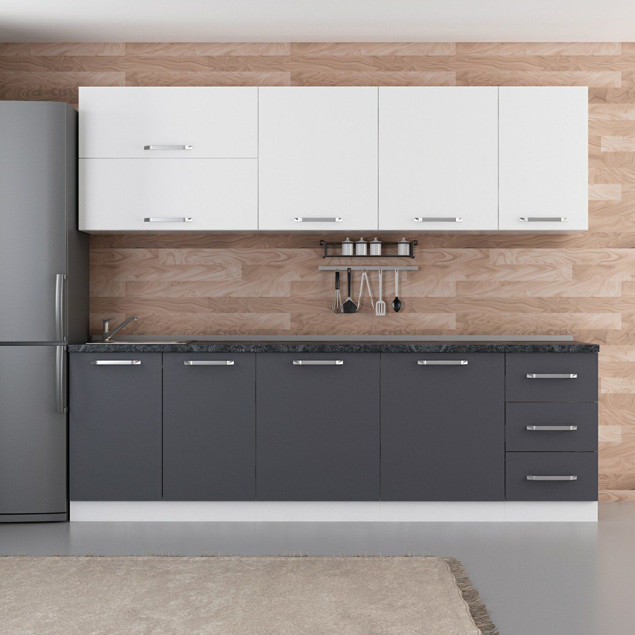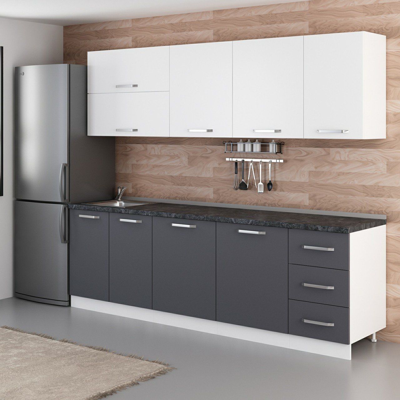 Minar 255 Cm Mutfak Dolabı Beyaz Antrasit 255-A2
