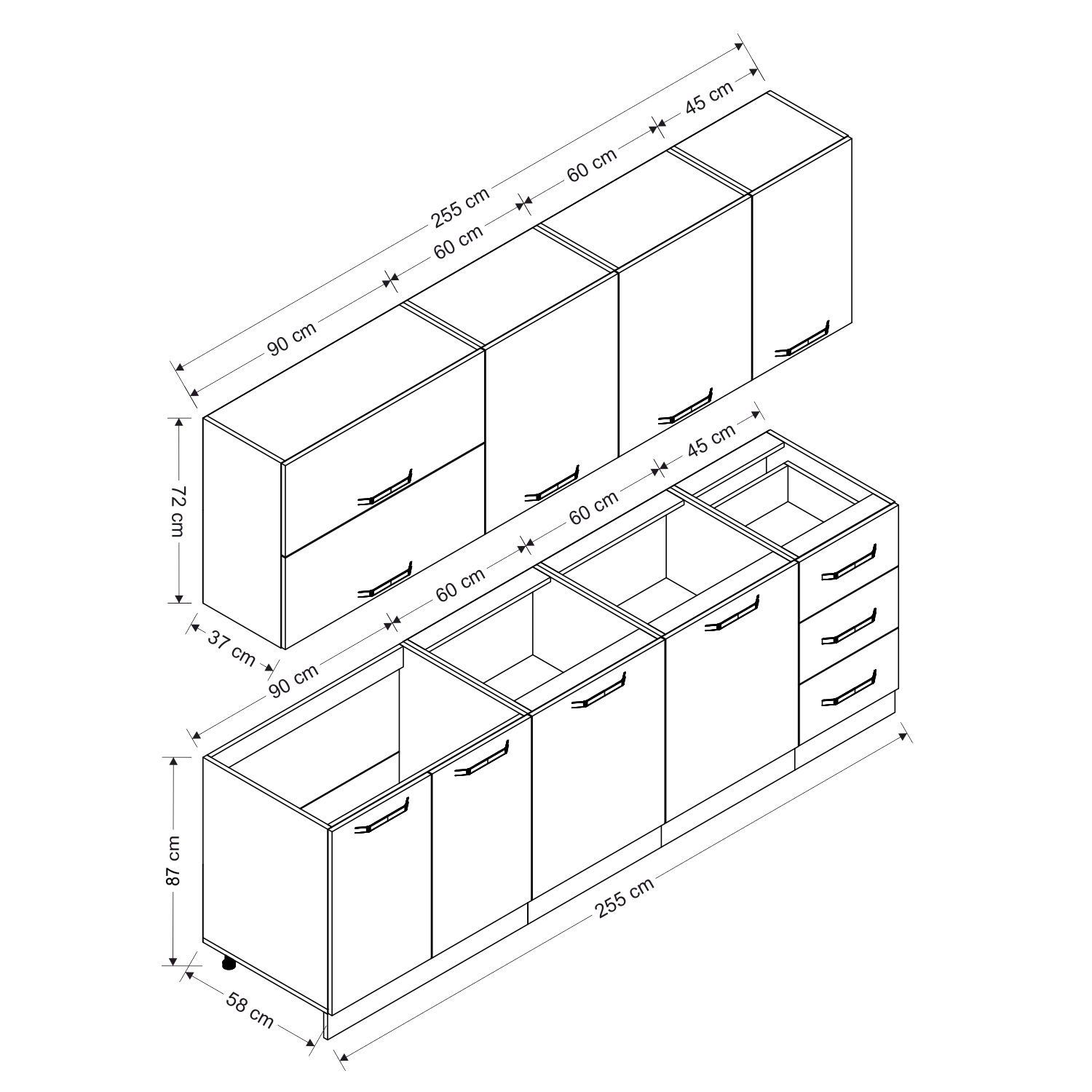 | Hazır Dolap Alt Modül Genişlik | : | 255 cm |