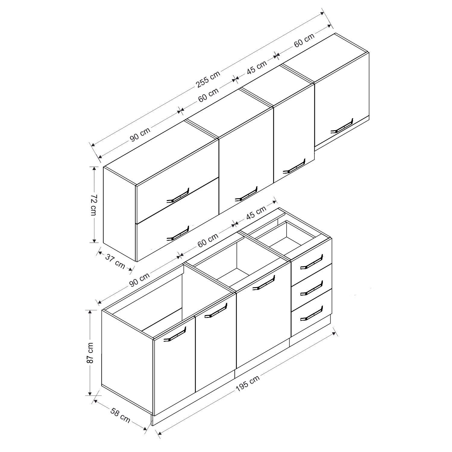 Minar 255 Cm Mutfak Dolabı Beyaz Antrasit 255-A7