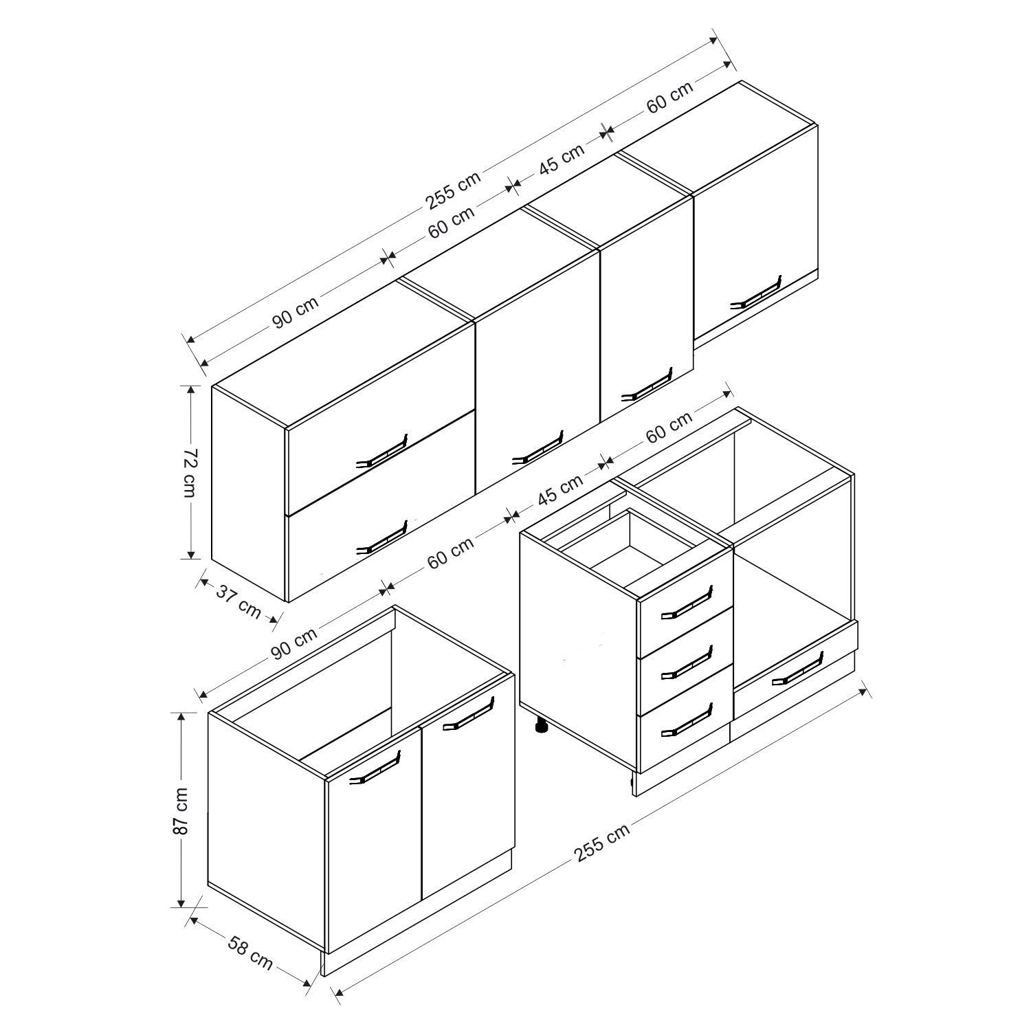 | Hazır Dolap Alt Modül Genişlik | : | 255 cm |