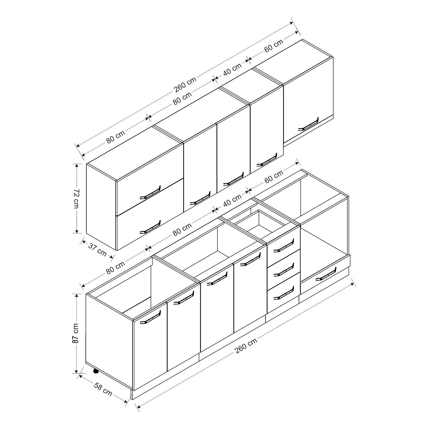 Minar 260 Cm Mutfak Dolabı Beyaz Antrasit 260-A5