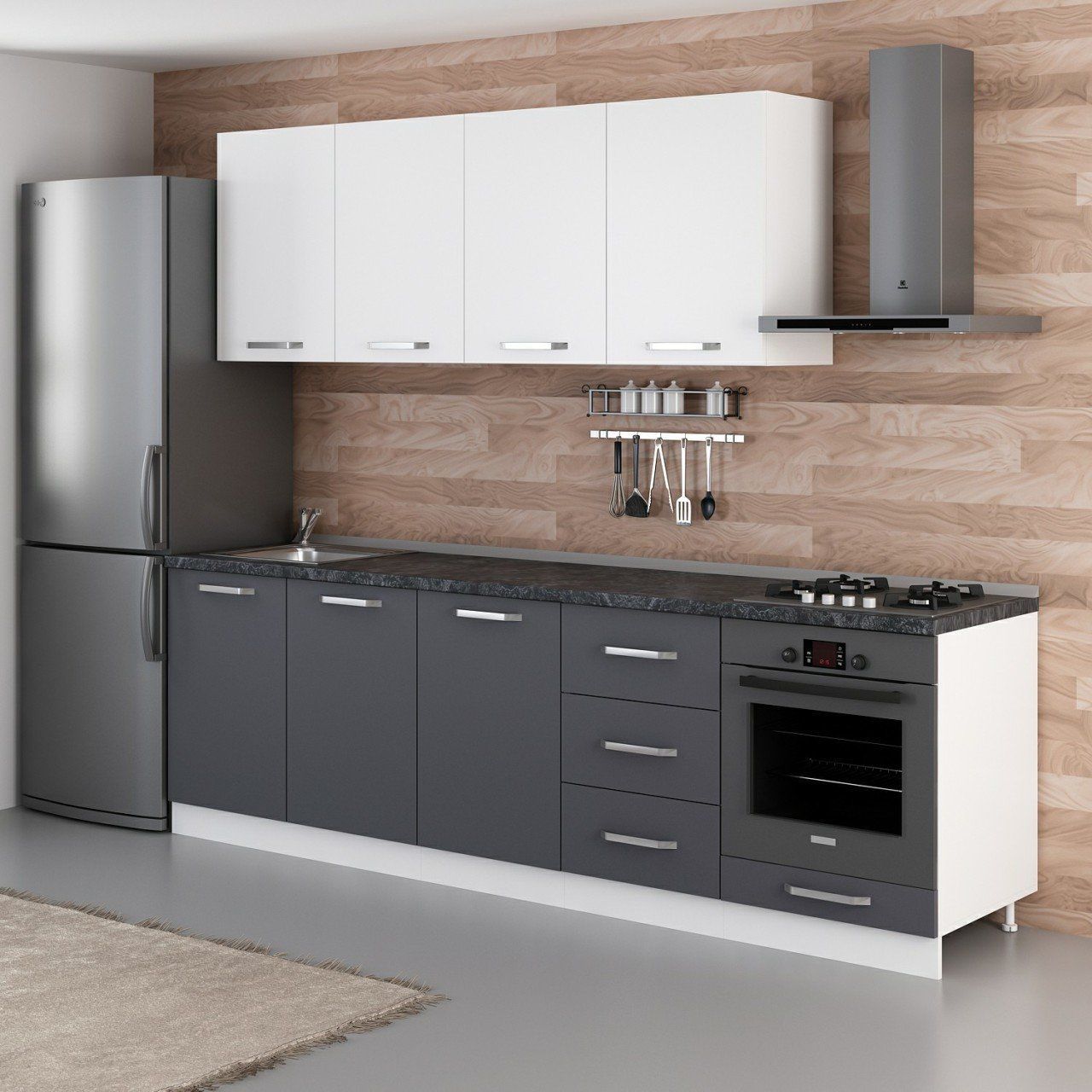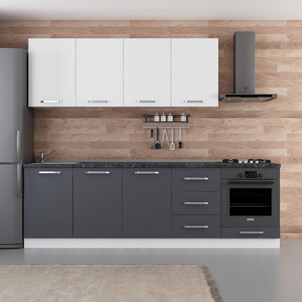 Minar 260 Cm Mutfak Dolabı Beyaz Antrasit 260-A6