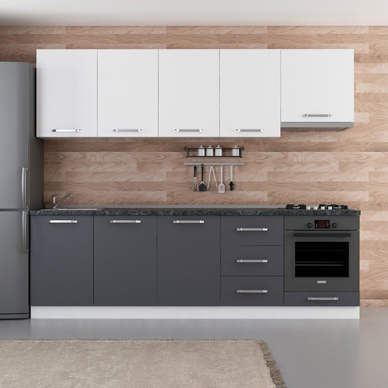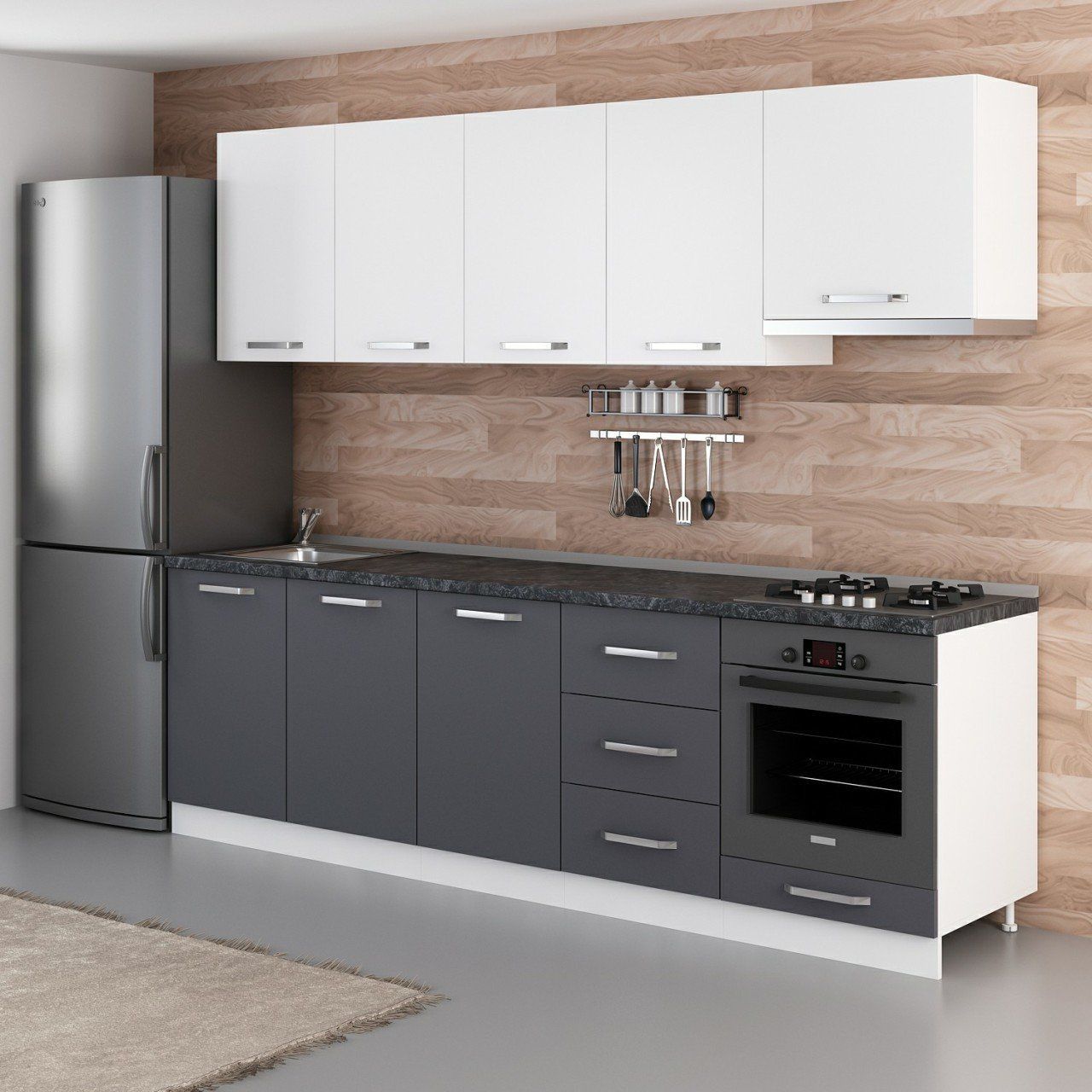 Minar 260 Cm Mutfak Dolabı Beyaz Antrasit 260-A8