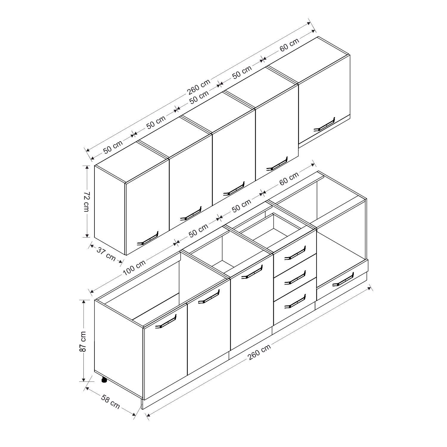 | Hazır Dolap Üst Modül Genişlik | : | 260 cm |