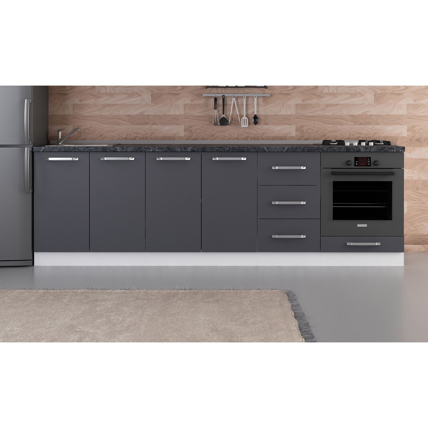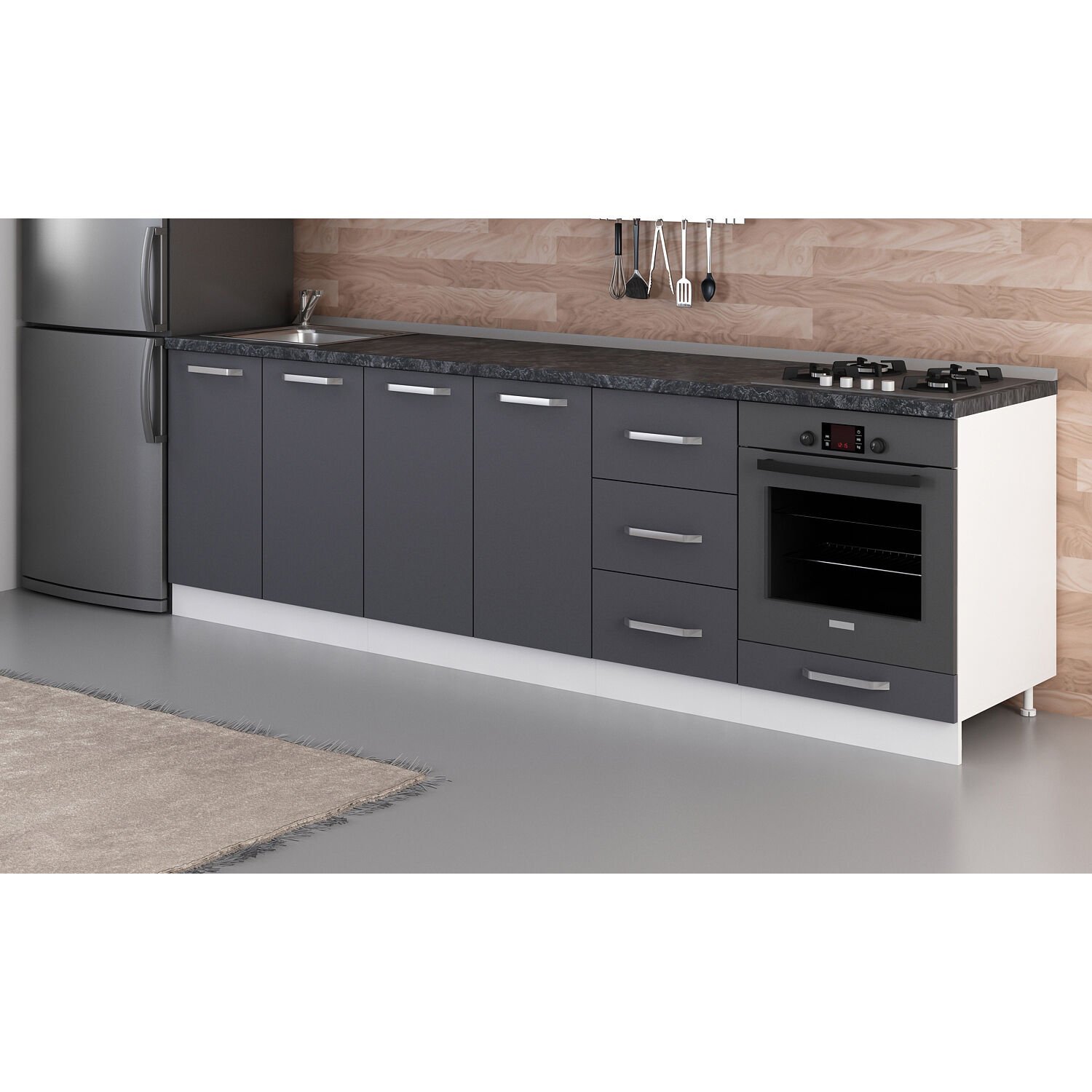 Minar 265 Cm Mutfak Dolabı Beyaz Antrasit 265-A3-Alt Modül