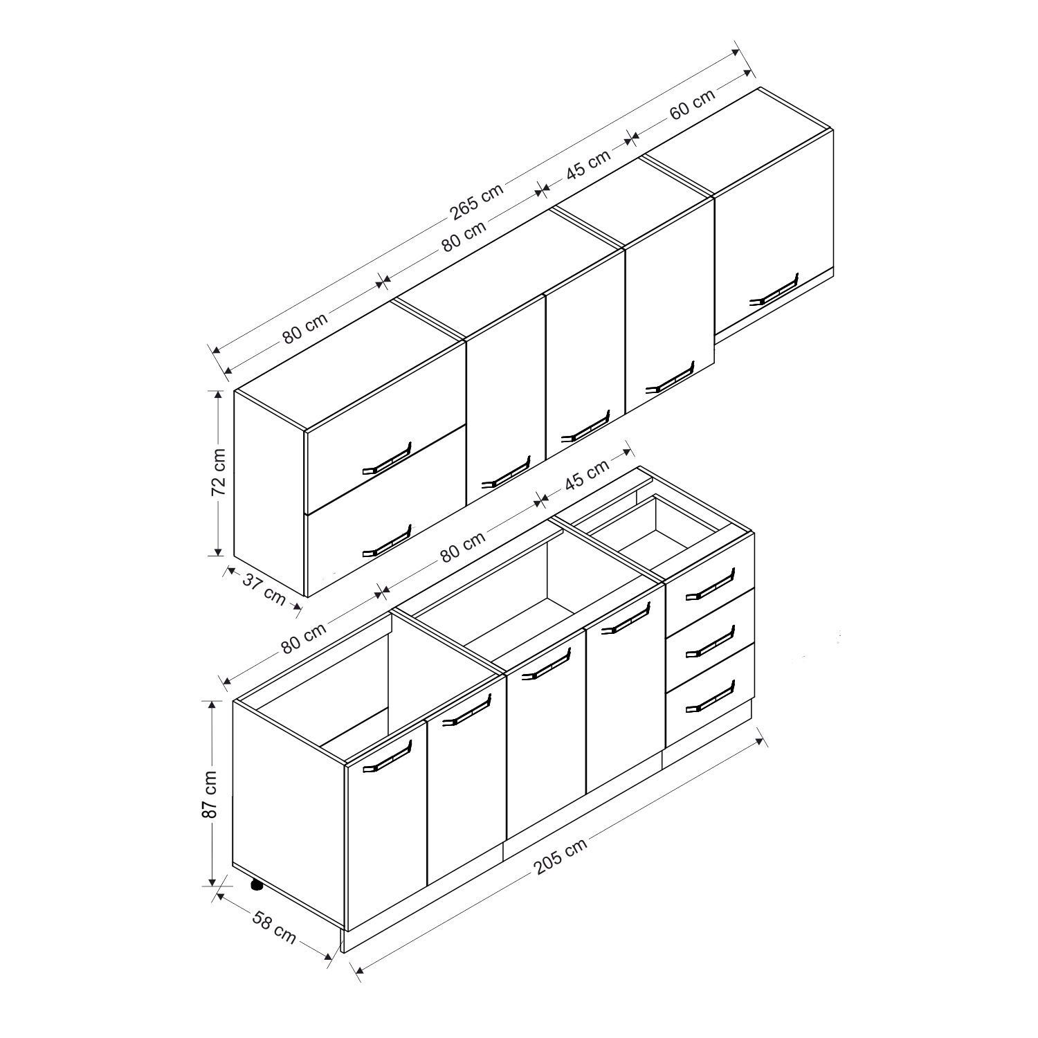 | Hazır Dolap Üst Modül Genişlik | : | 265 cm |
