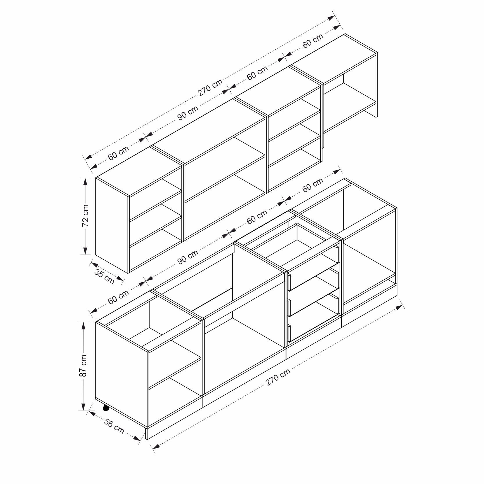 | Hazır Dolap Alt Modül Genişlik | : | 270 cm |