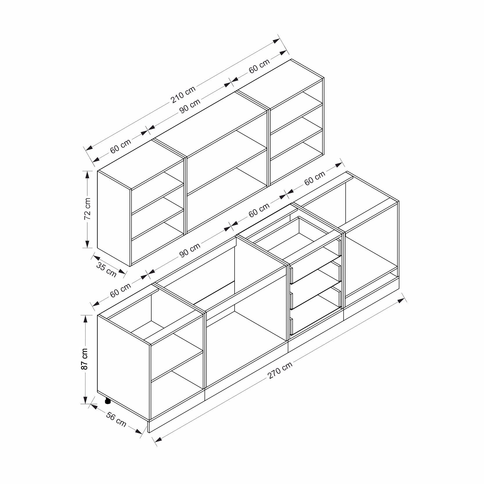 | Hazır Dolap Alt Modül Genişlik | : | 270 cm |
