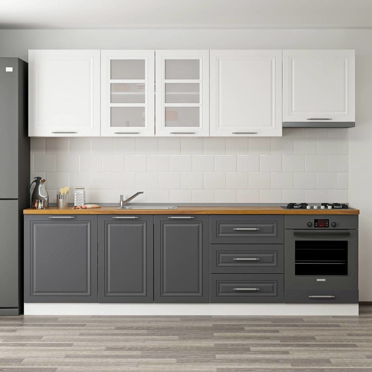 MİNAR 270 CM MEBRAN C MUTFAK DOLABI BEYAZ ANTRASİT 270-MCBA1