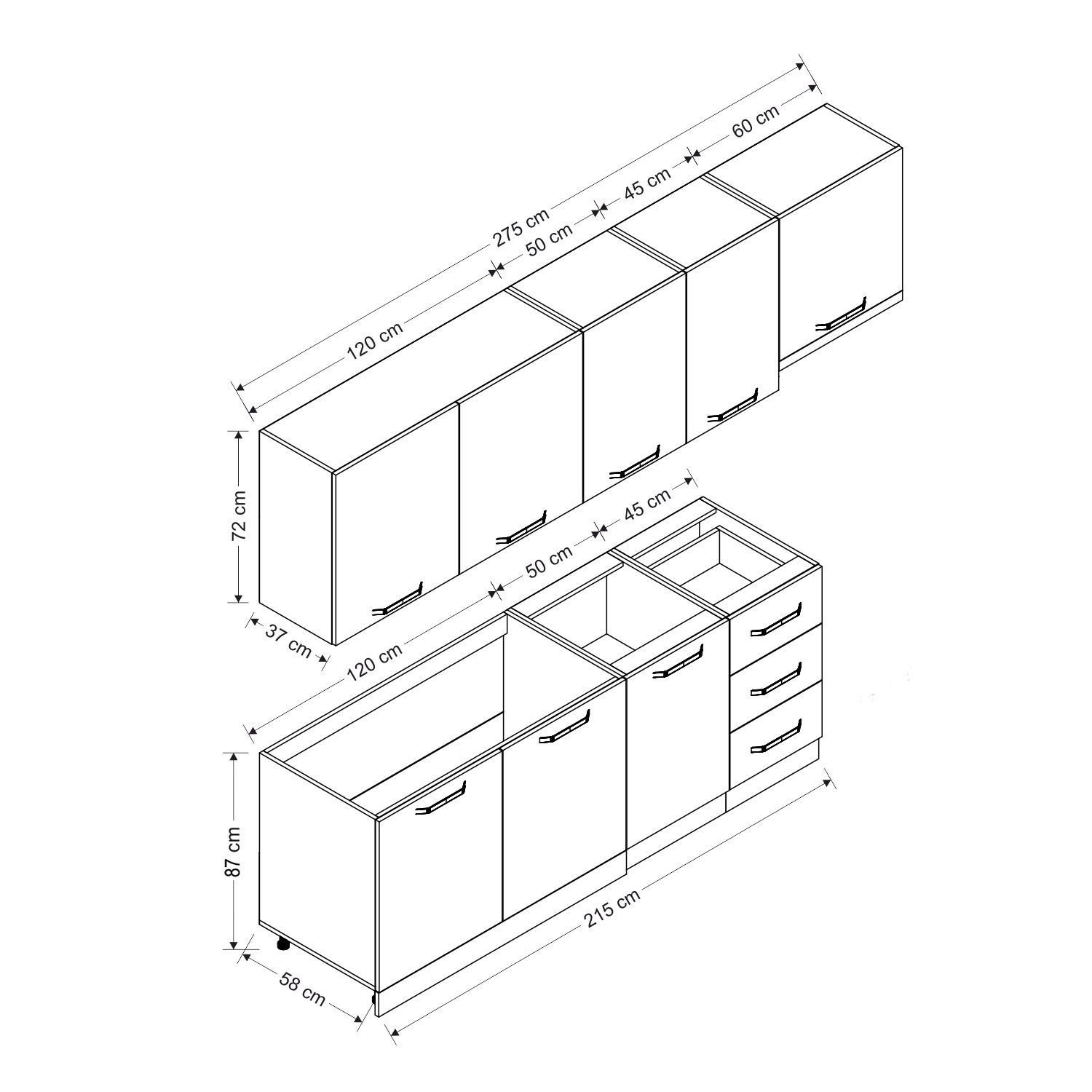 | Hazır Dolap Üst Modül Genişlik | : | 275 cm |