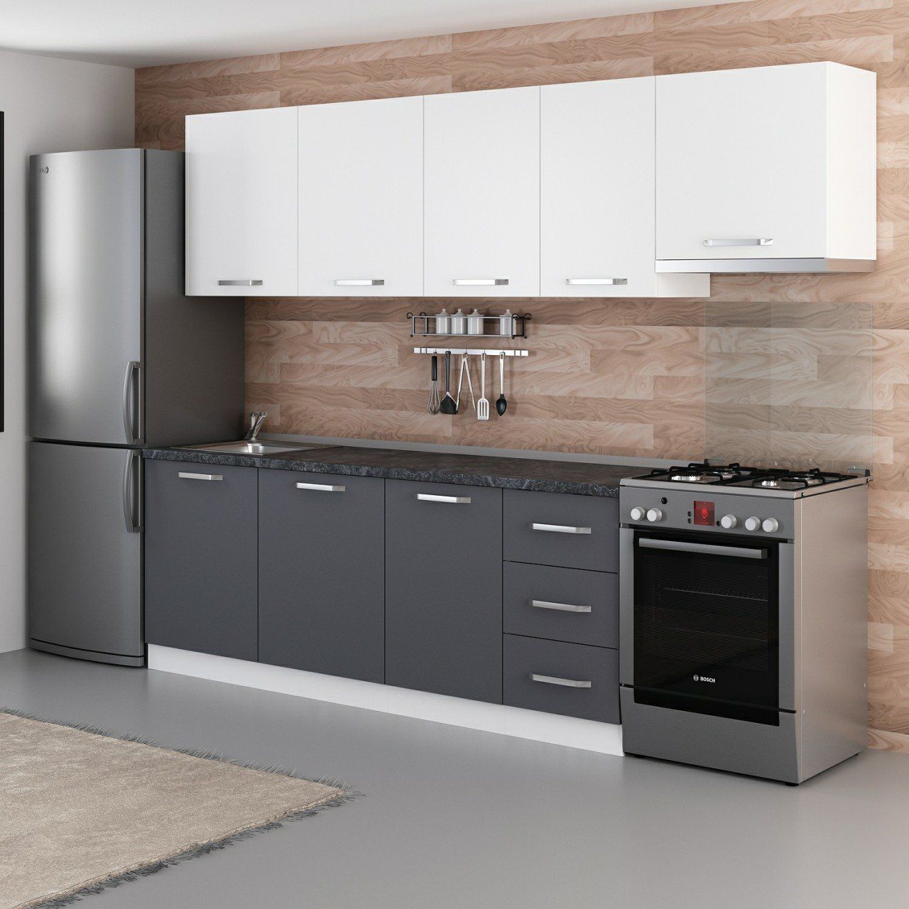 Minar 275 Cm Mutfak Dolabı Beyaz Antrasit 275-A7
