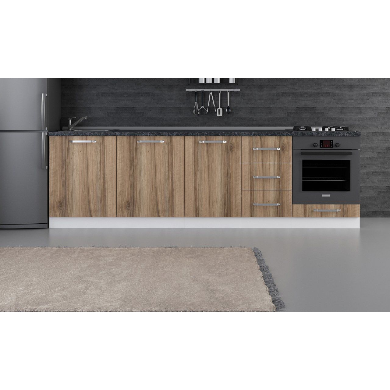 Alt modüllerin yüksekliğine 3 cm tezgah kalınlığı eklenmelidir!