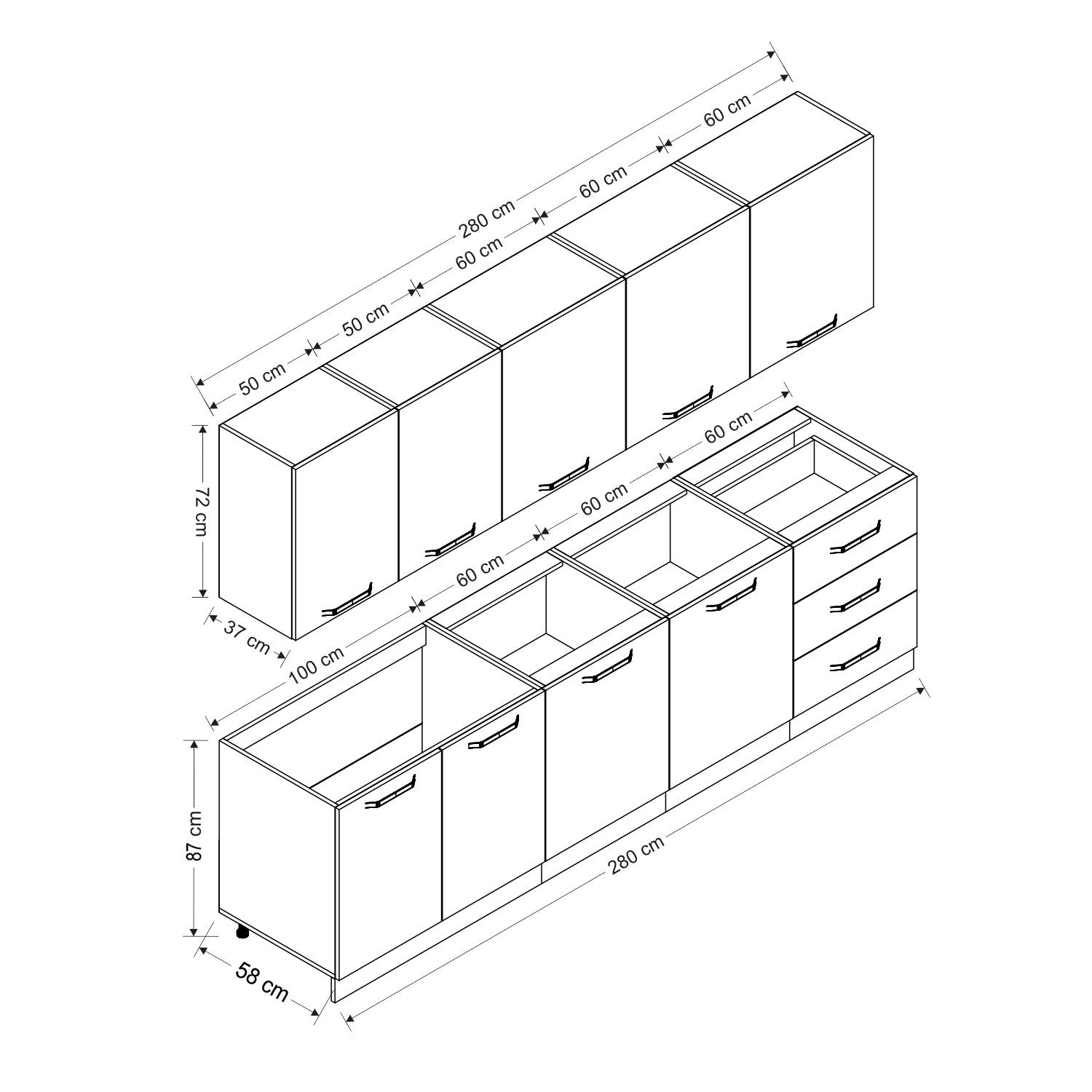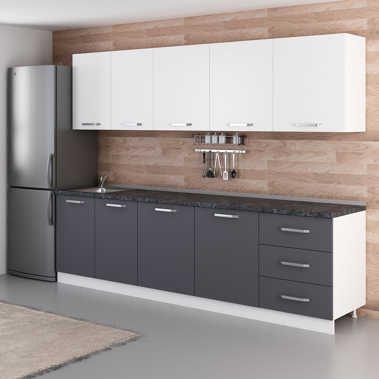 Minar 280 Cm Mutfak Dolabı Beyaz Antrasit 280-A2-Alt Modül