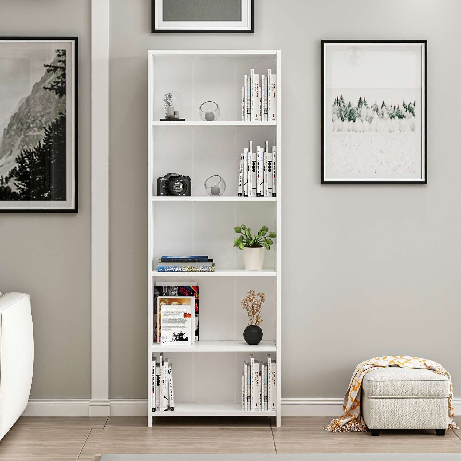 Minar 5 Raflı Modern Kitaplık - Beyaz