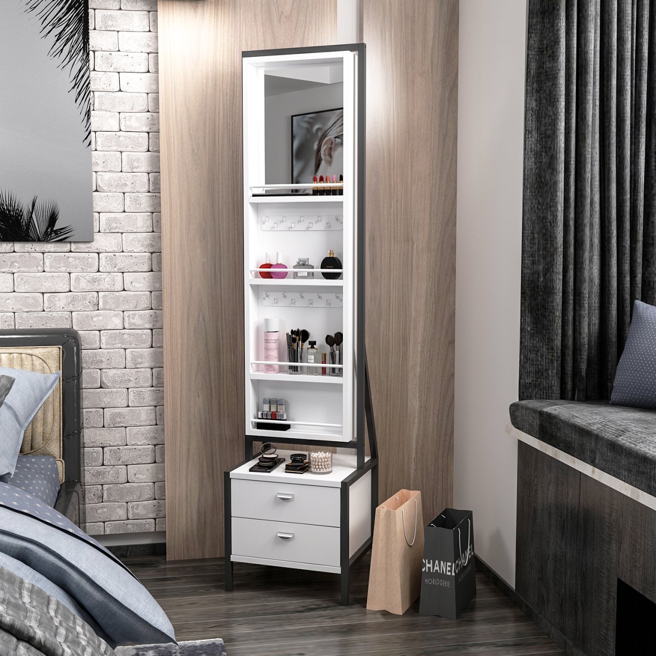Minar Elegante Aynalı Hareketli Çekmeceli Takı Dolabı / Beyaz