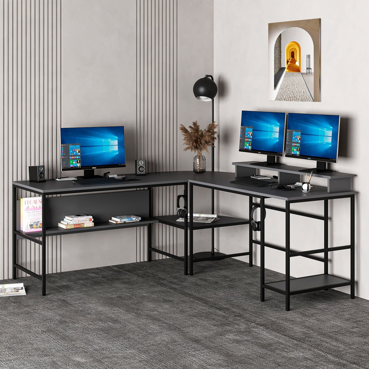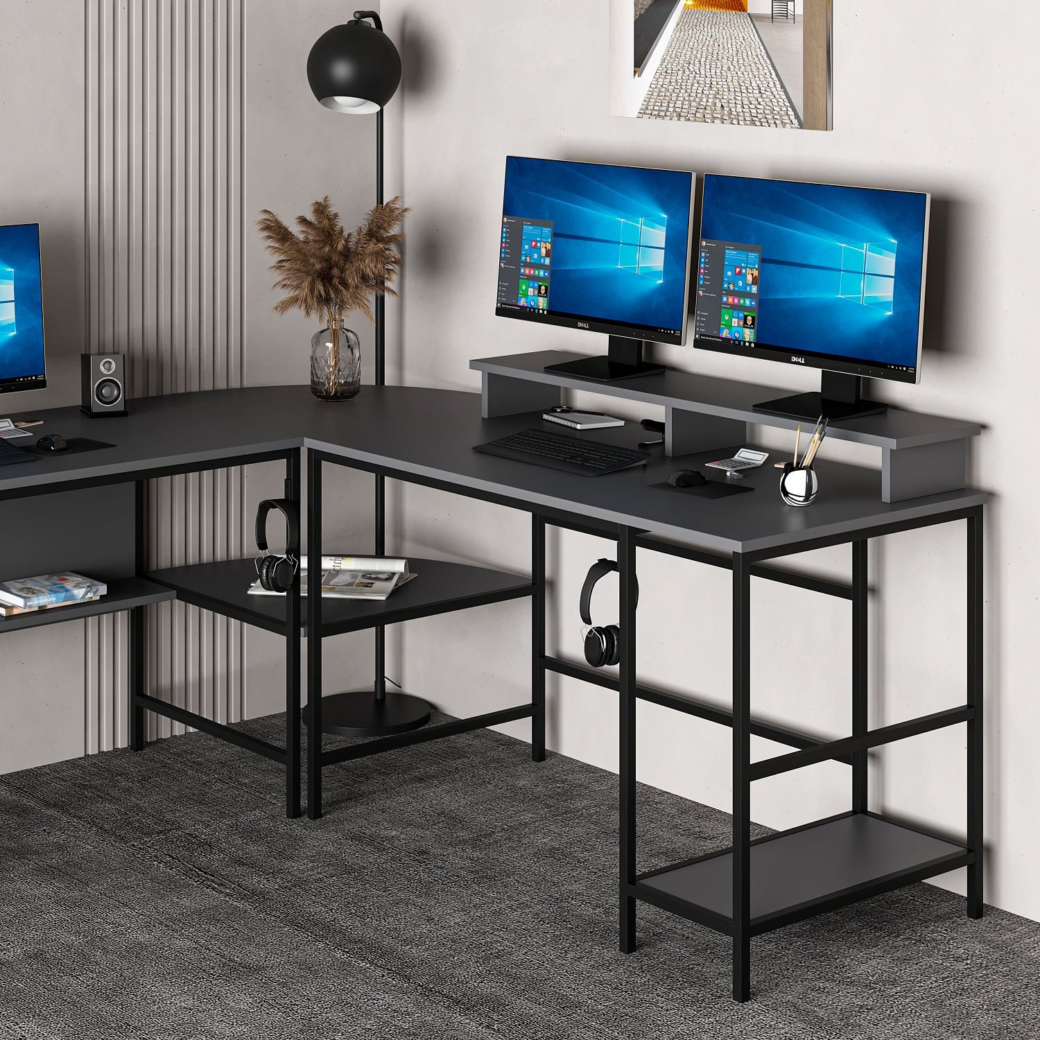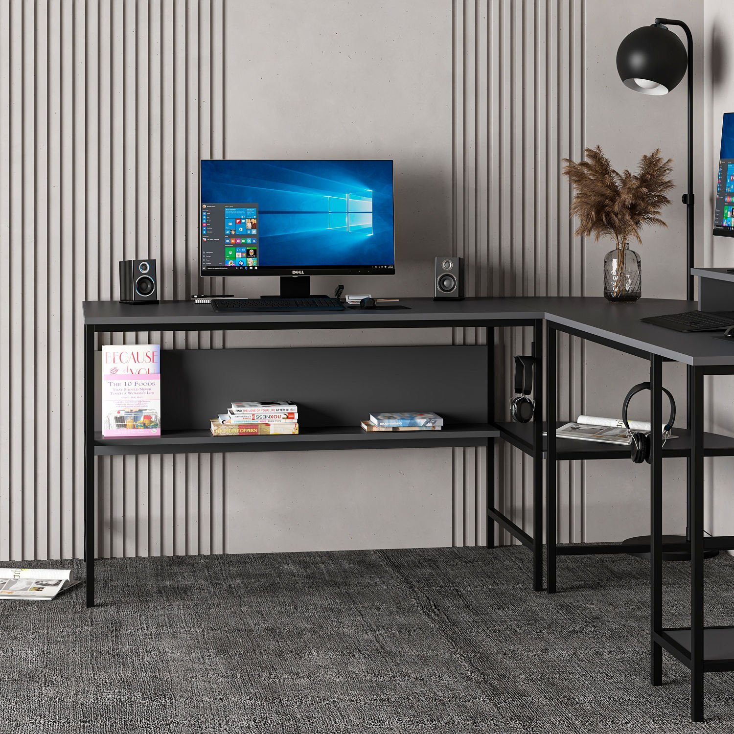 Minar Greta Raflı L Köşe Çalışma Masası – Antrasit