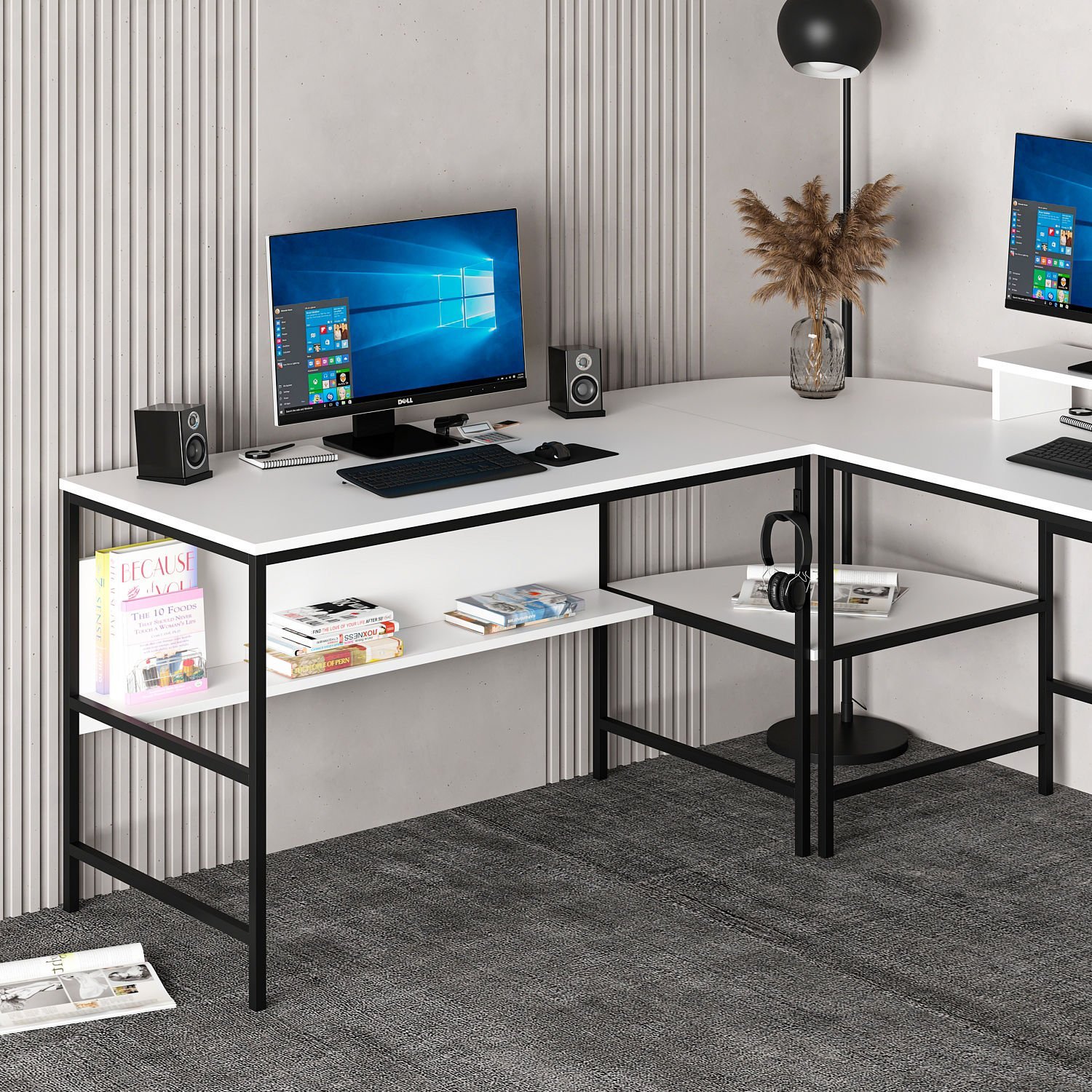 Minar Greta Raflı L Köşe Çalışma Masası – Beyaz