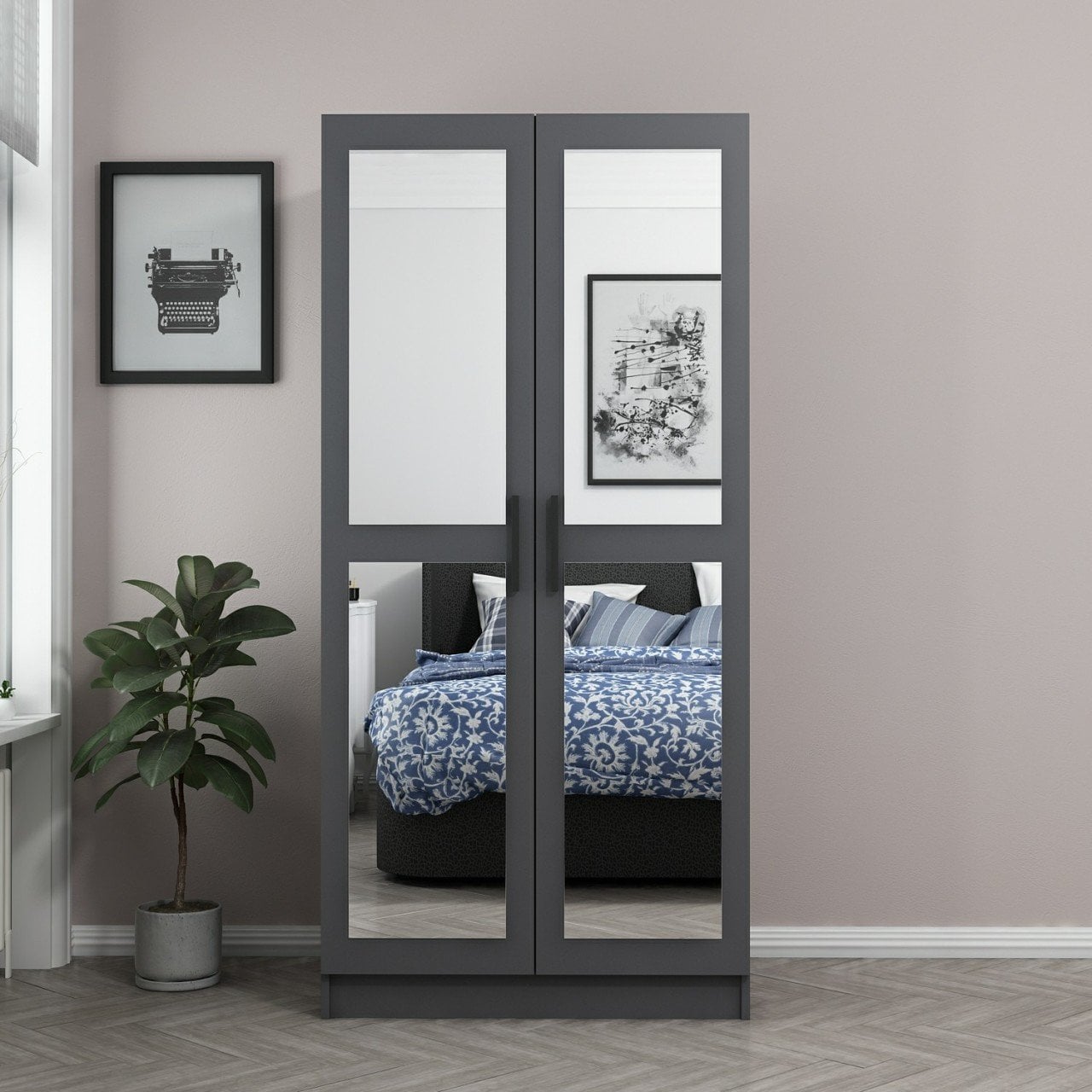 Minar Kale 2 Kapaklı 2 Aynalı Dolap Antrasit
